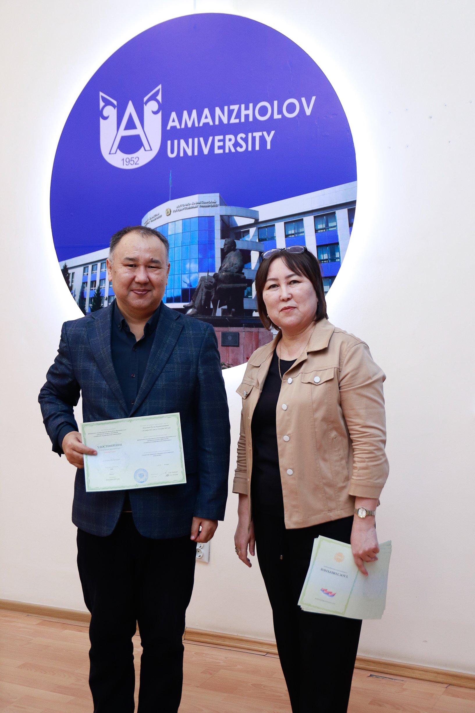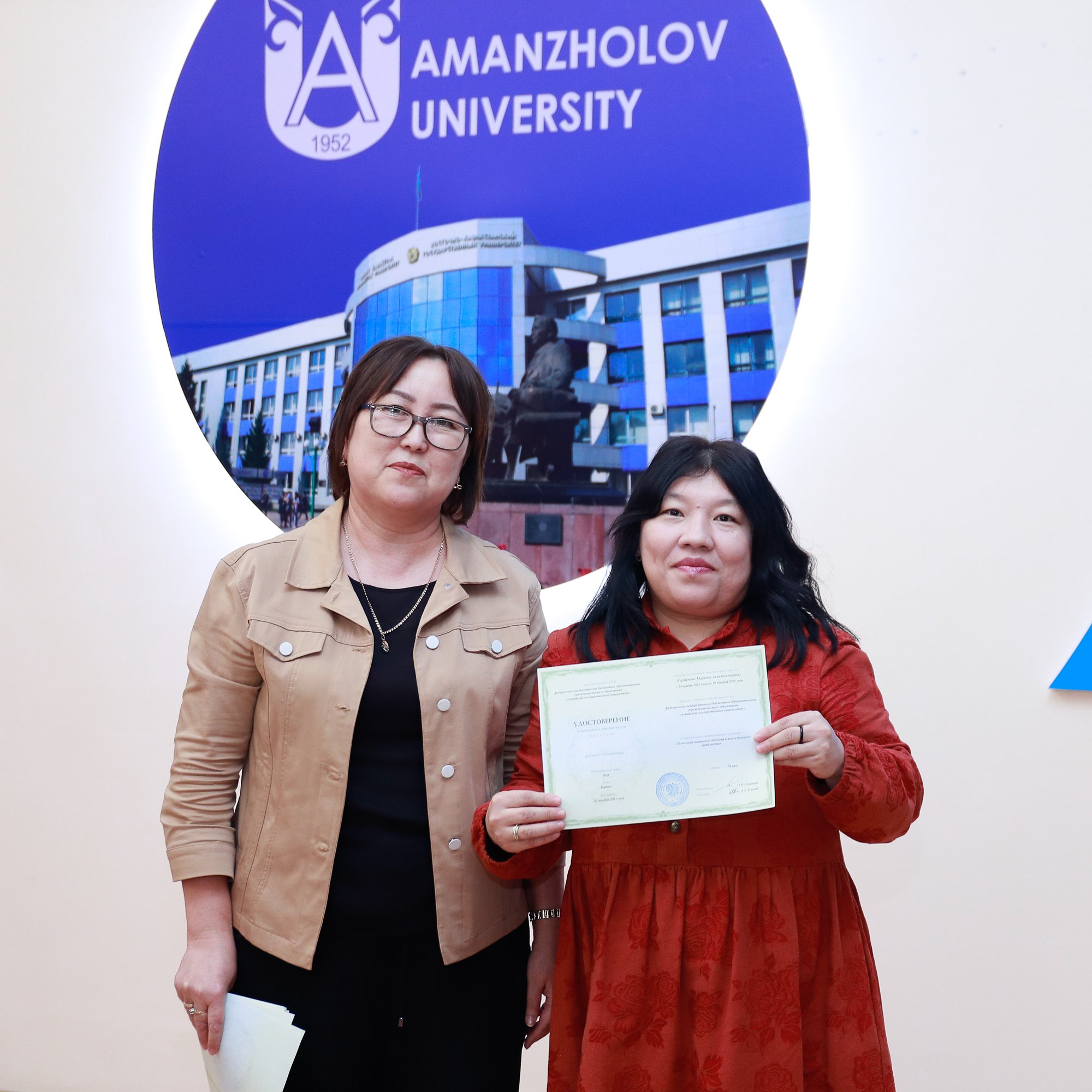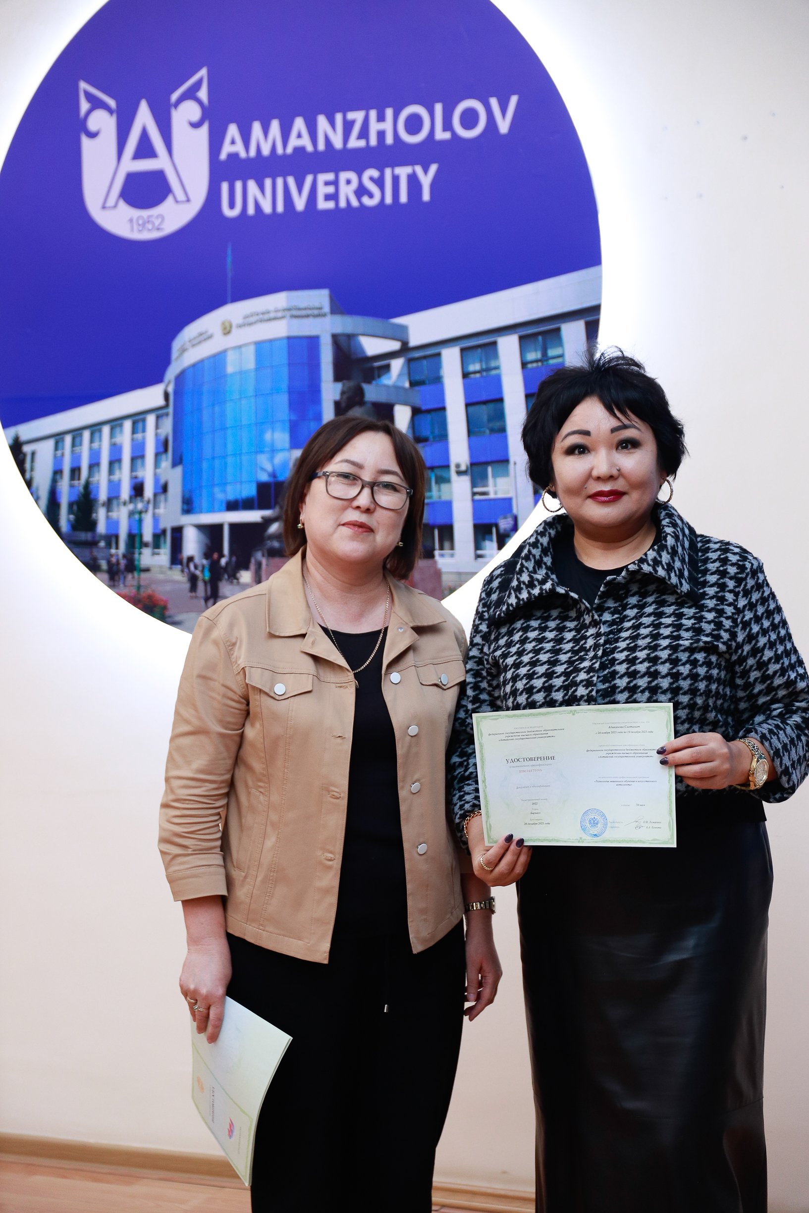Бүгін Аманжолов университетінде Алтай мемлекеттік университетінің  «Машиналық оқыту және жасанды интеллект технологиялары» атты білім беру курсын сәтті аяқтаған тыңдаушыларға сертификаттарды салтанатты түрде табыстау рәсімі өтті.