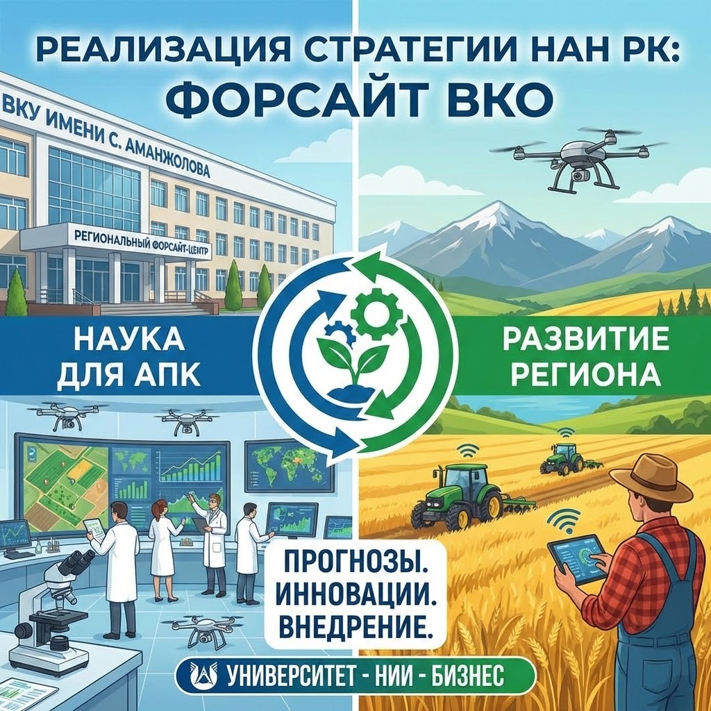 Осы стратегиялық бағыт аясында Сәрсен Аманжолов атындағы Шығыс Қазақстан университетінің базасында өңірлік форсайт-орталық ашылды. Аталған орталықтың басты мақсаты – Шығыс Қазақстан облысының агроөнеркәсіптік кешенін (АӨК) дамытудың ұзақ мерзімді болжамдарын әзірлеу, ғылыми негізделген стратегиялар қалыптастыру және өңірдің ауыл шаруашылығы саласына қажетті технологиялық, кадрлық және инновациялық басымдықтарды айқындау.