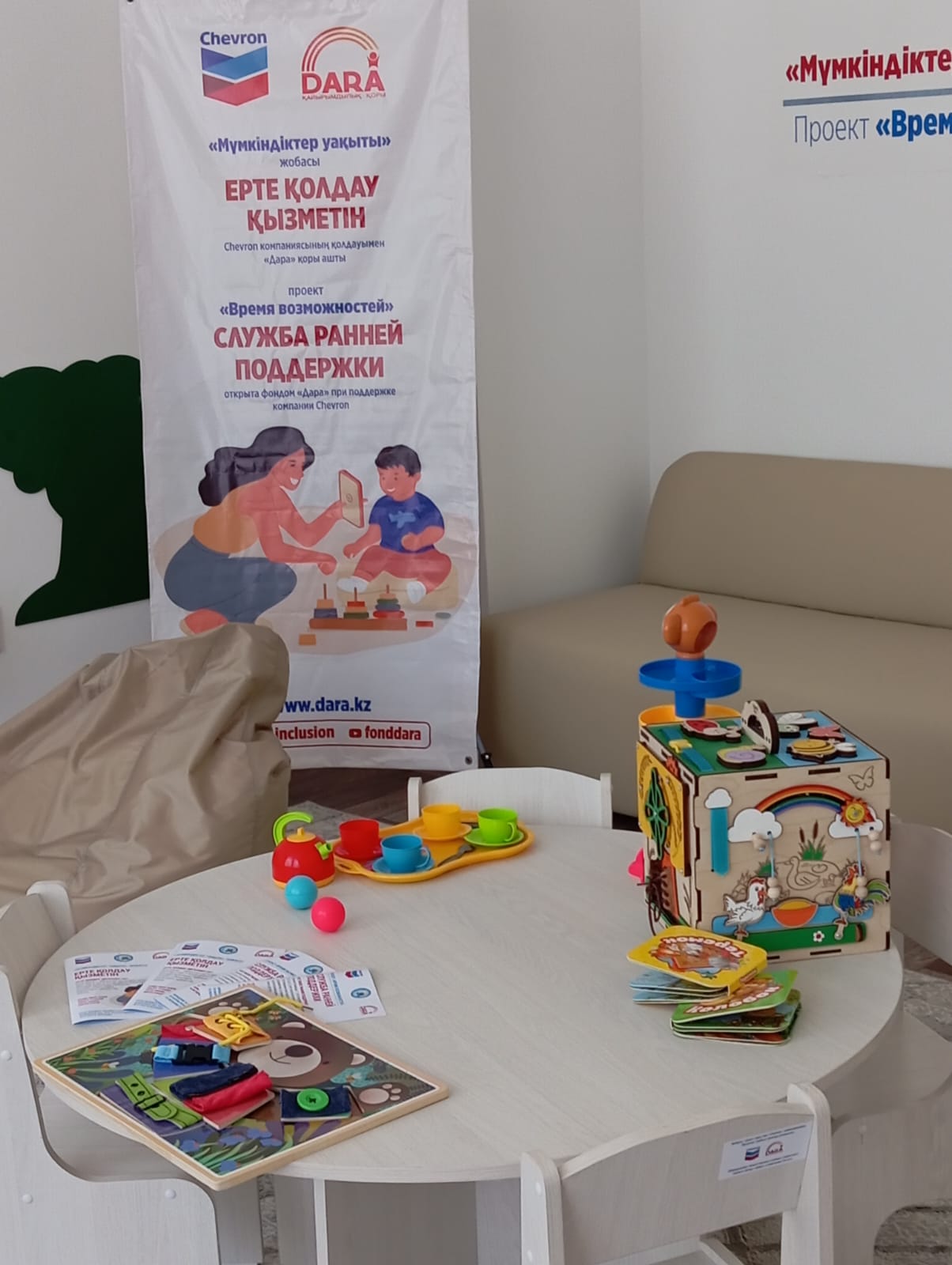 Сапар мақсаты – «Мүмкіндіктер уақыты» жобасы аясында таяуда ашылған ерте жастан қолдау кабинетімен танысу. Айта кетейік, бұл «Дара» қорымен жабдықталған еліміздегі алғашқы Ерте жастан қолдау қызметі.