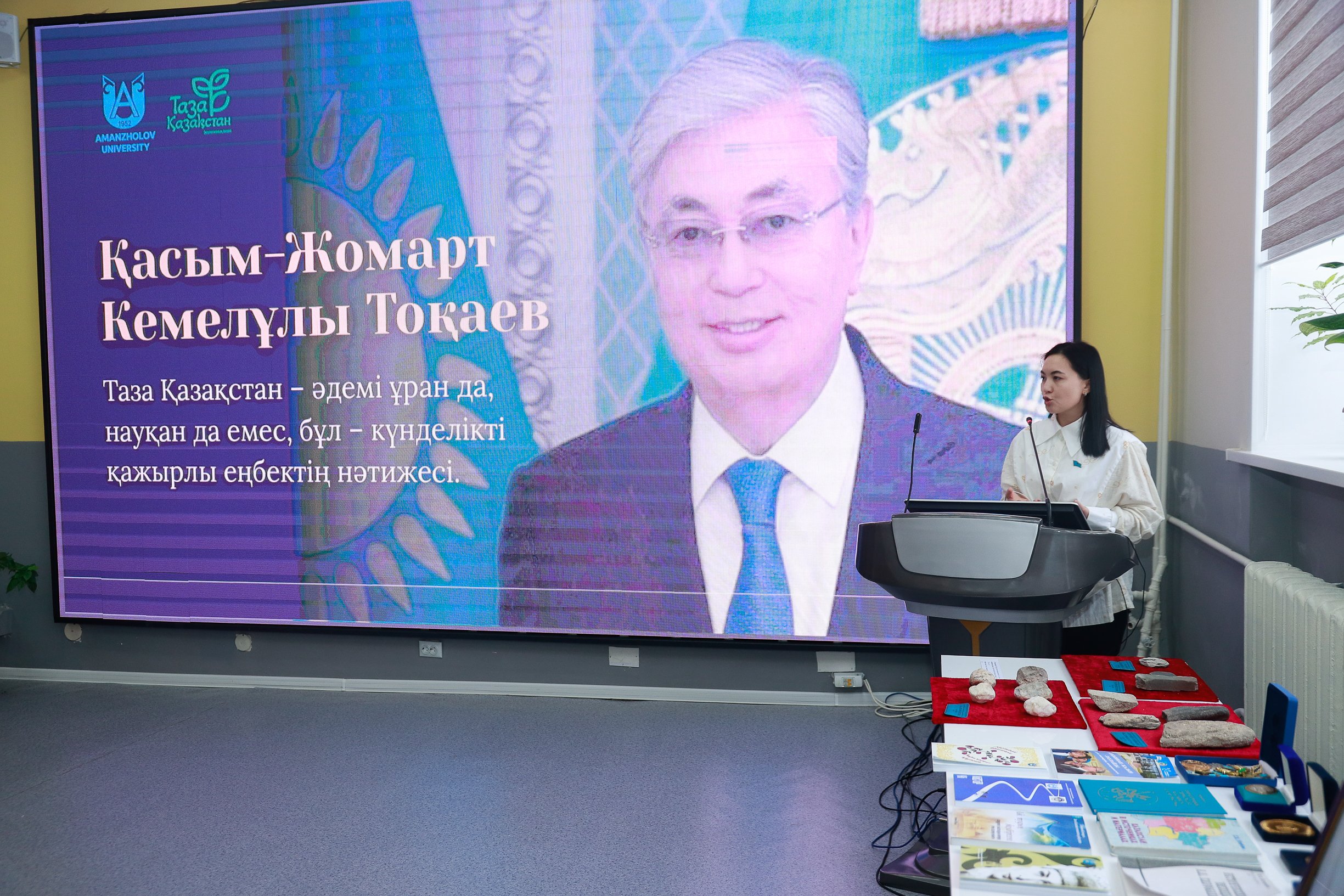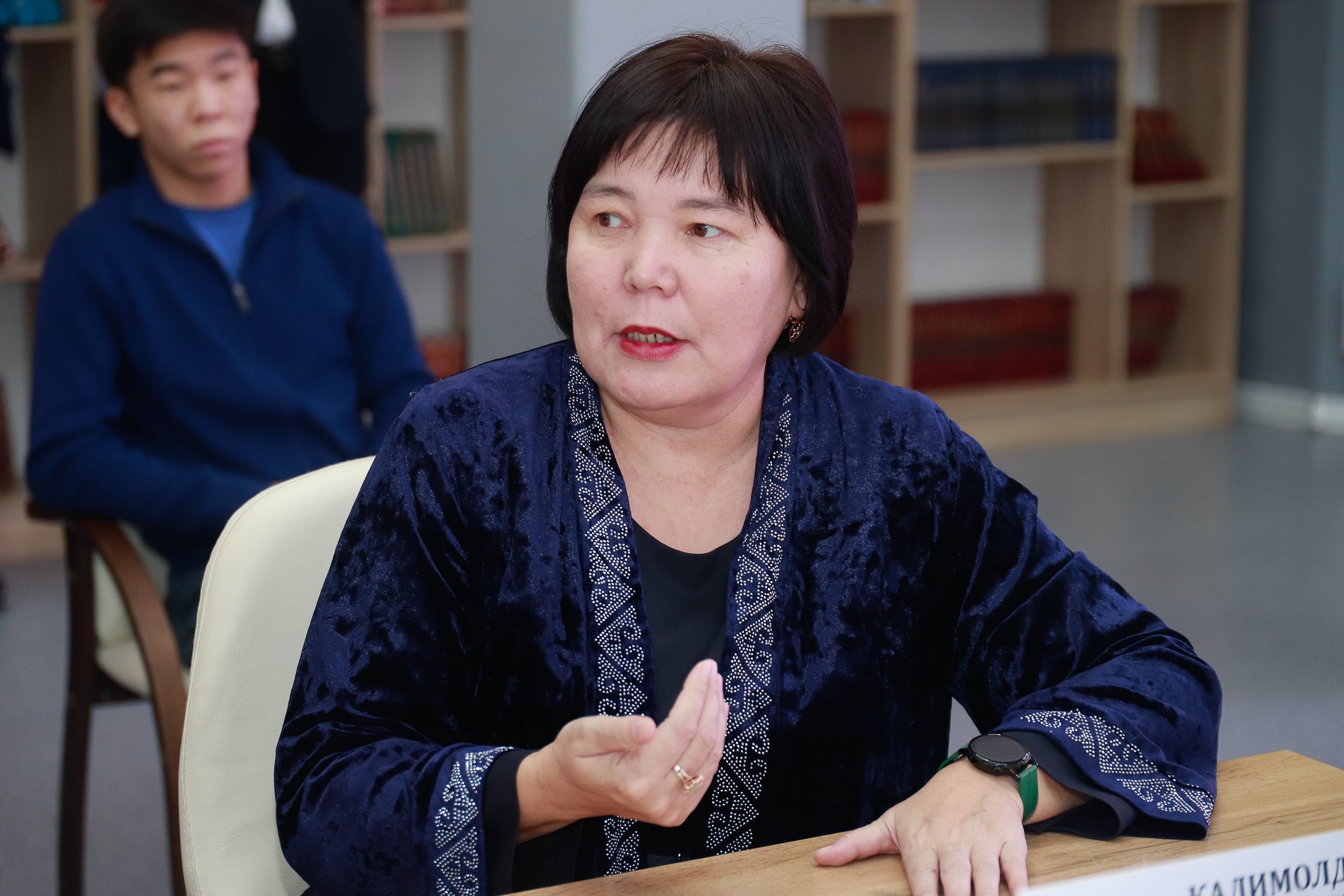 Директор научно-исследовательского института «Абайтану» при Восточно-Казахстанском университете имени Сарсена Аманжолова, доктор филологических наук Айжан Картаева выступила с содержательным докладом на тему «Концепция “Адал азамат” и актуальность учения Абая в современном обществе», раскрыв духовно-нравственное значение учения Абая «Толық адам» в воспитании современной молодежи.