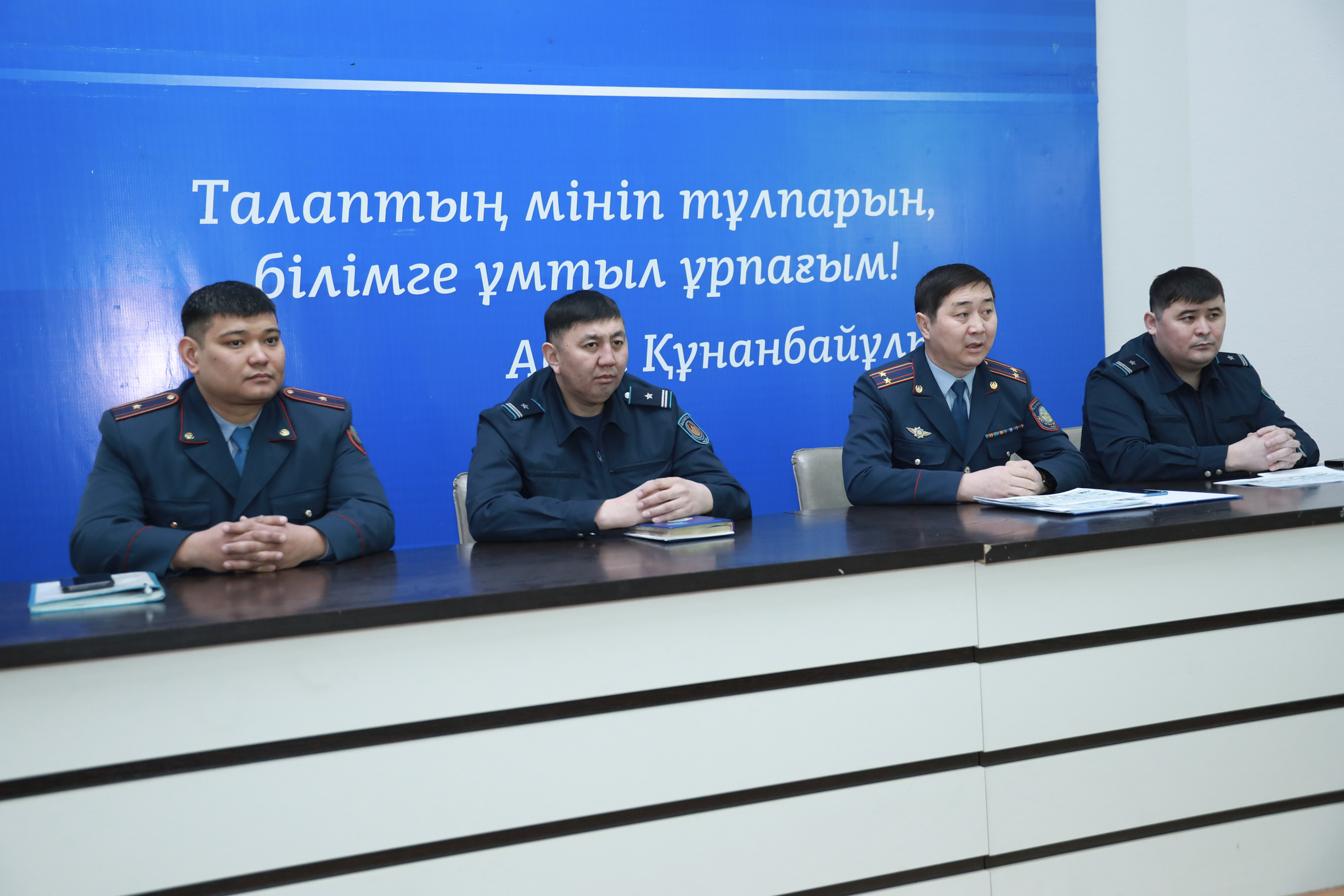 ЖОО-да «Құқықтану» білім беру бағдарламасы түлектері полиция қызметкерлерімен кездесті. Мақсаты- университет қабырғасын аяқтаған соң,жұмысқа орналастыру бойынша үгіт-насихат жұмыстарын жүргізу.