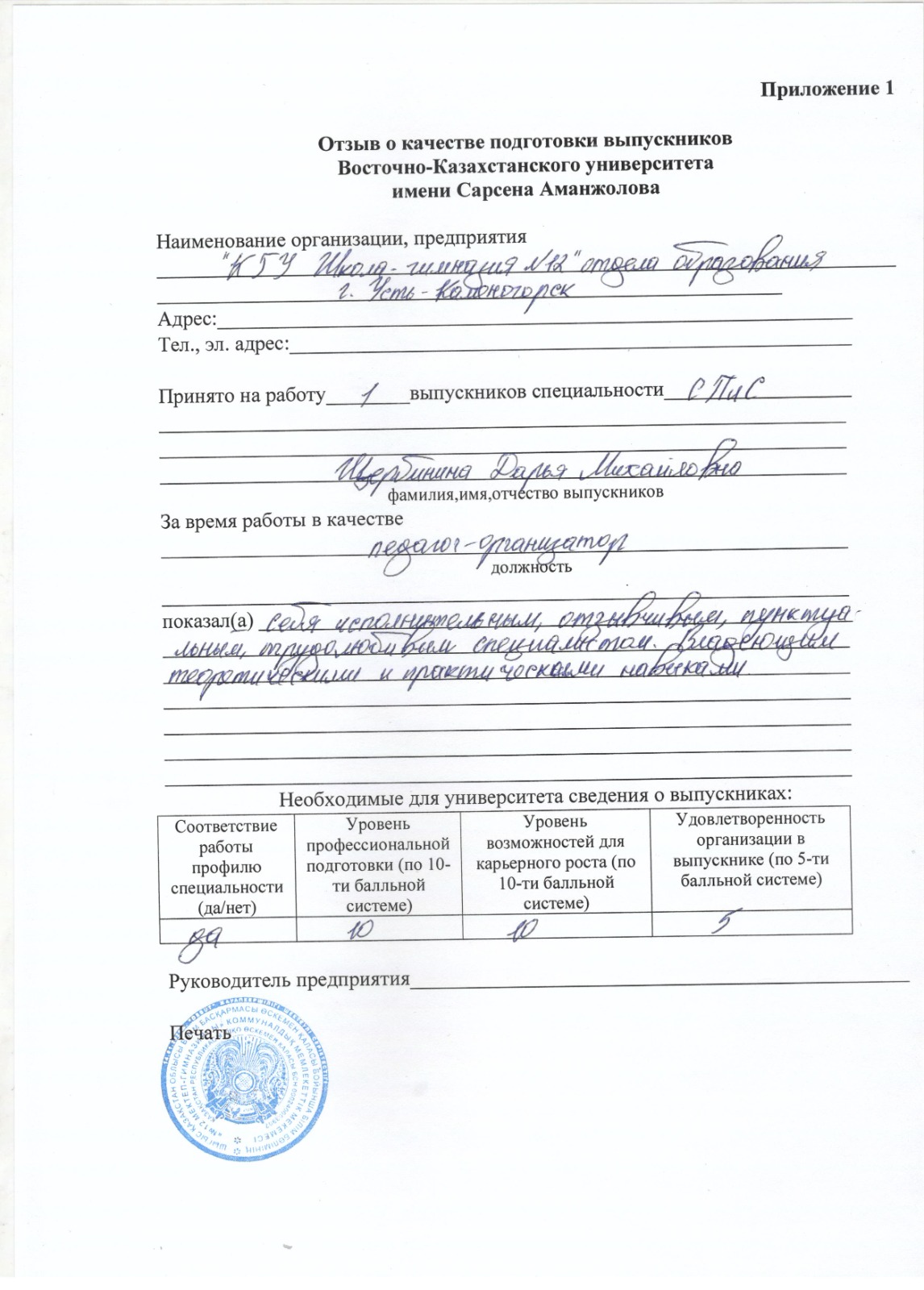 - түлектерді іріктеуге көмек көрсете алады. Мәлімделген бос жұмыс орындарына кандидатураларды іріктеу Сіздің білім деңгейіне, ізденушінің кәсіби және жеке қасиеттеріне қойылатын талаптарыңызды ескере отырып жүргізіледі;