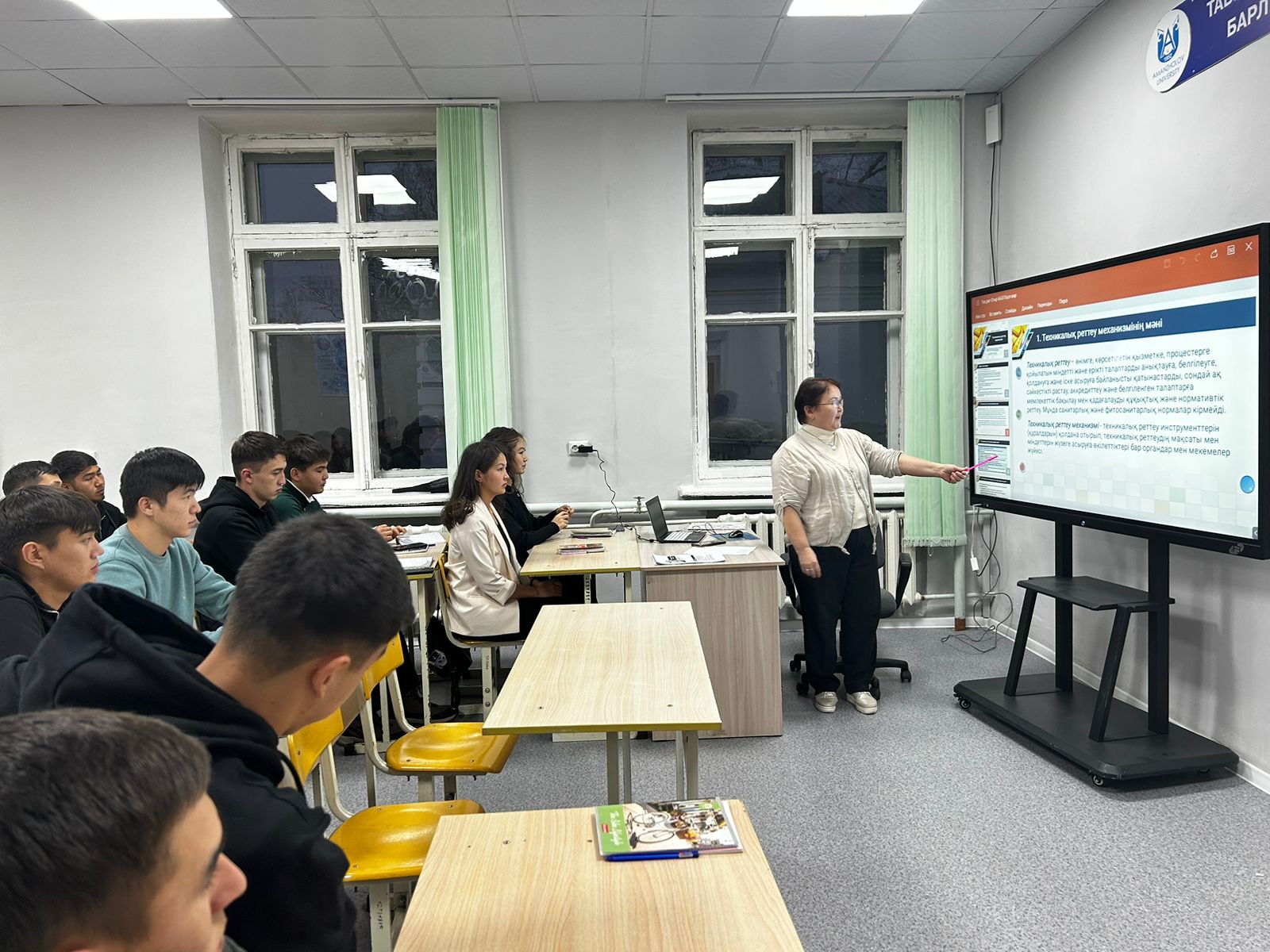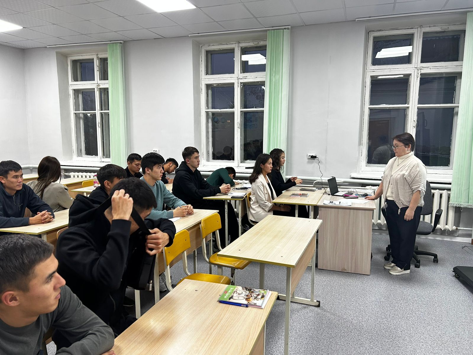 При проведении лекционного занятия профессором Абдугалиевой Г.Ю. был применен метод тематического обсуждения для проверки освоения студентами новых знаний и закрепления их.