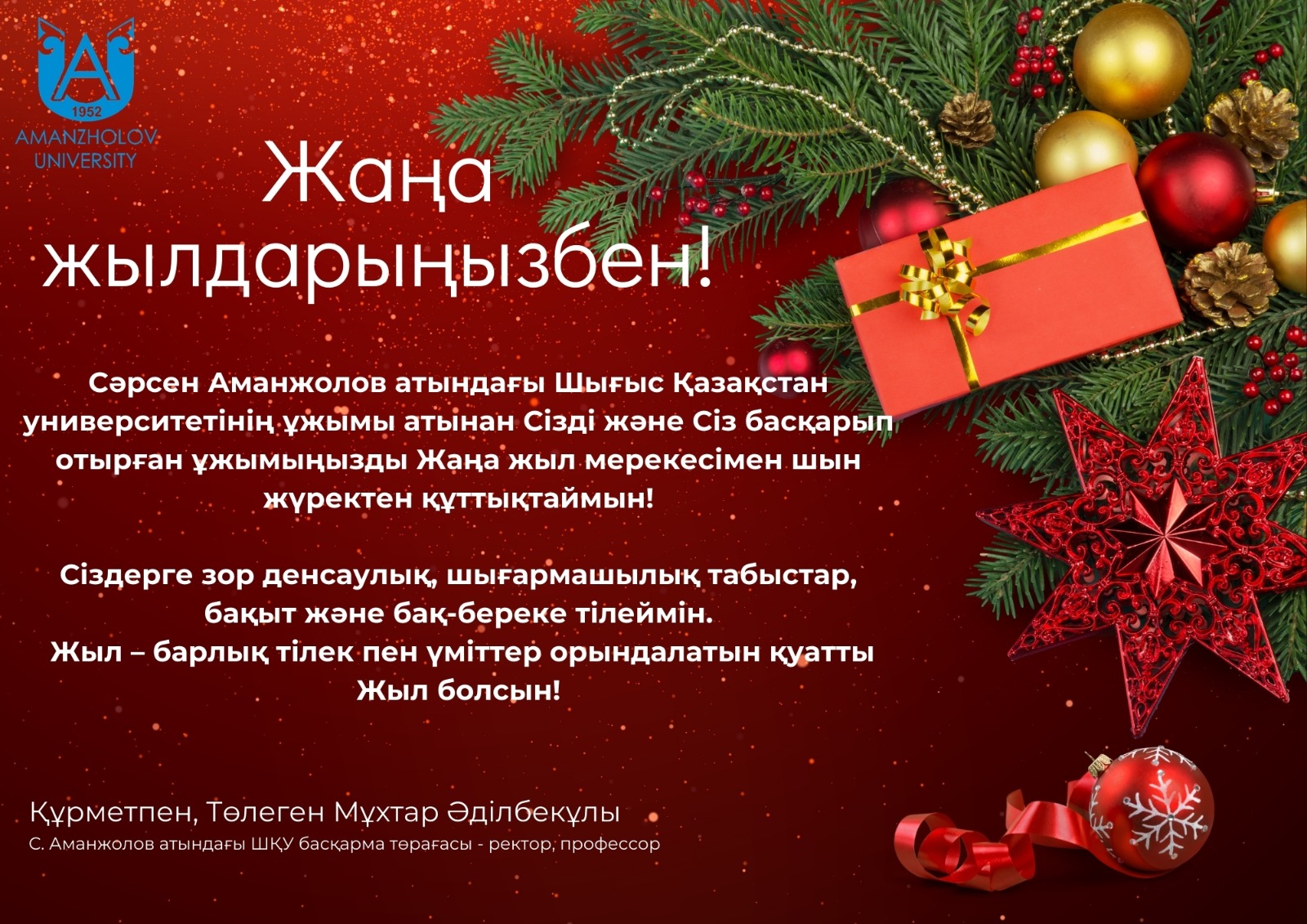 РЕКТОР МҰХТАР ТӨЛЕГЕН УНИВЕРСИТЕТ ҰЖЫМЫН ЖАҢА ЖЫЛМЕН ҚҰТТЫҚТАДЫ