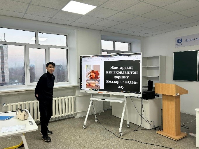 Шара соңында студенттерге “Закладка” деректі фильмі көрсетілді. Топ кураторы сөз соңында жастарды жаман әдеттерден аулақ болып, салауатты өмір салтын ұстанып, бос уақытын тиімді істермен айналысуға шақырды. Білім алушылар тарапынан сұрақтарын қойылып, өзара еркін пікір алмасты.