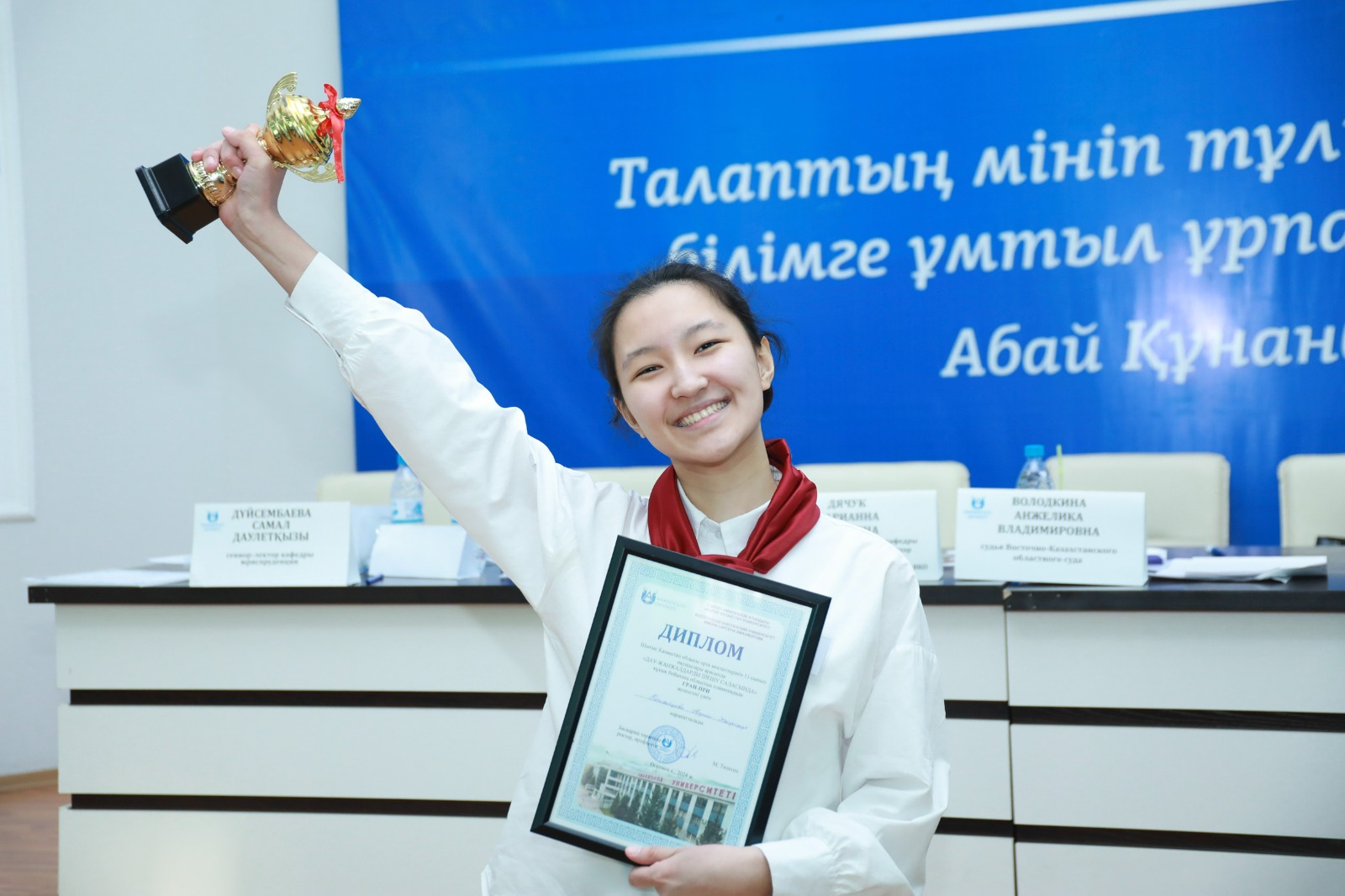 Барлық жеңімпаздар мен қатысушылар сертификаттармен және алғысхаттармен марапатталды. Бас жүлде Құқықтану мамандығы бойынша оқу гранты болды. Оның иегері №22 мектептің 11-сынып оқушысы Аружан Қажиақберова атанды.