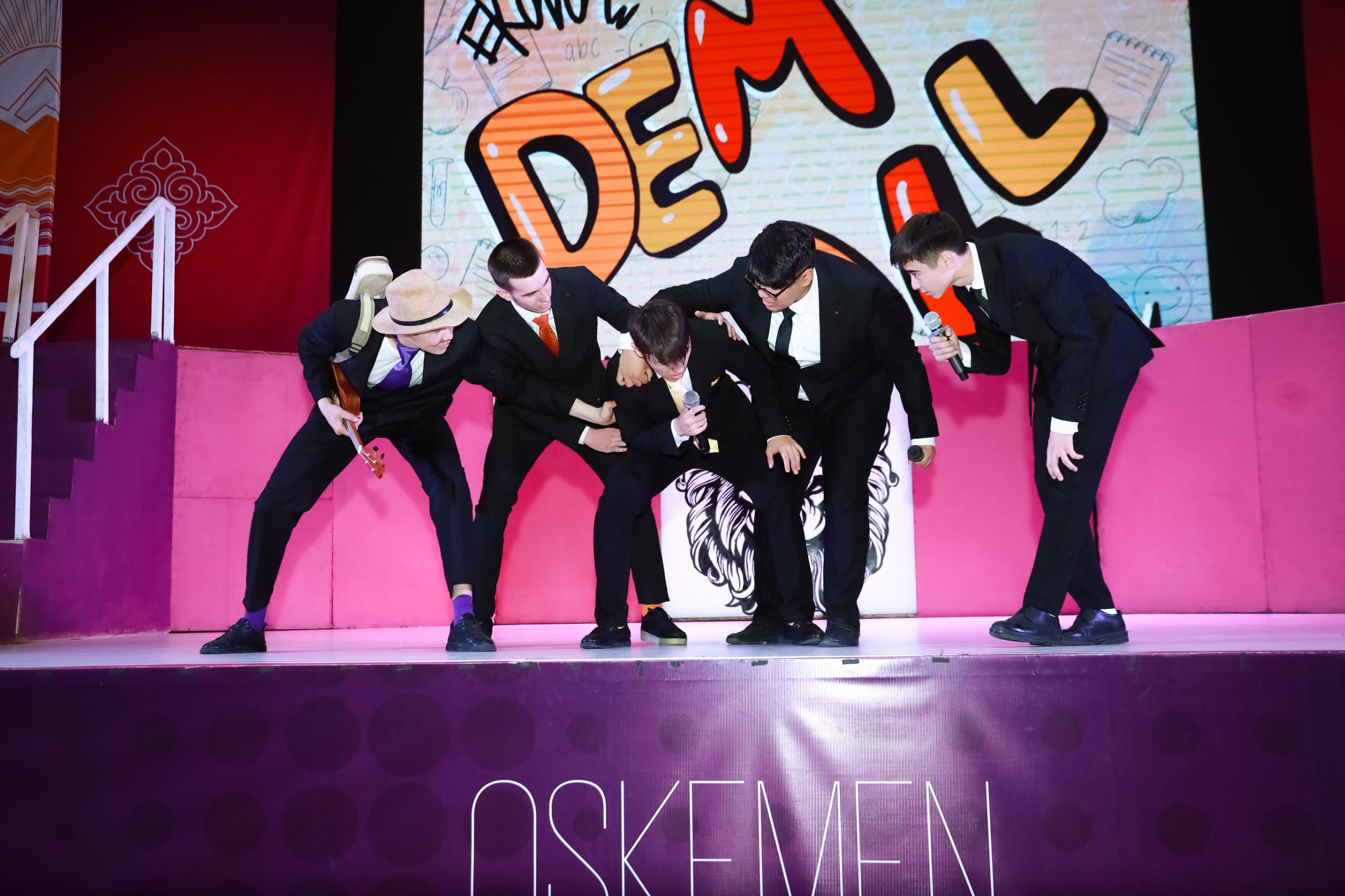 Заманауи бимен қатар әуезді ән, мағыналы қойылым мен астарлы әзіл үндестік тапқан кеште жоғары колледж студенттері жоғары өнер көрсетті.