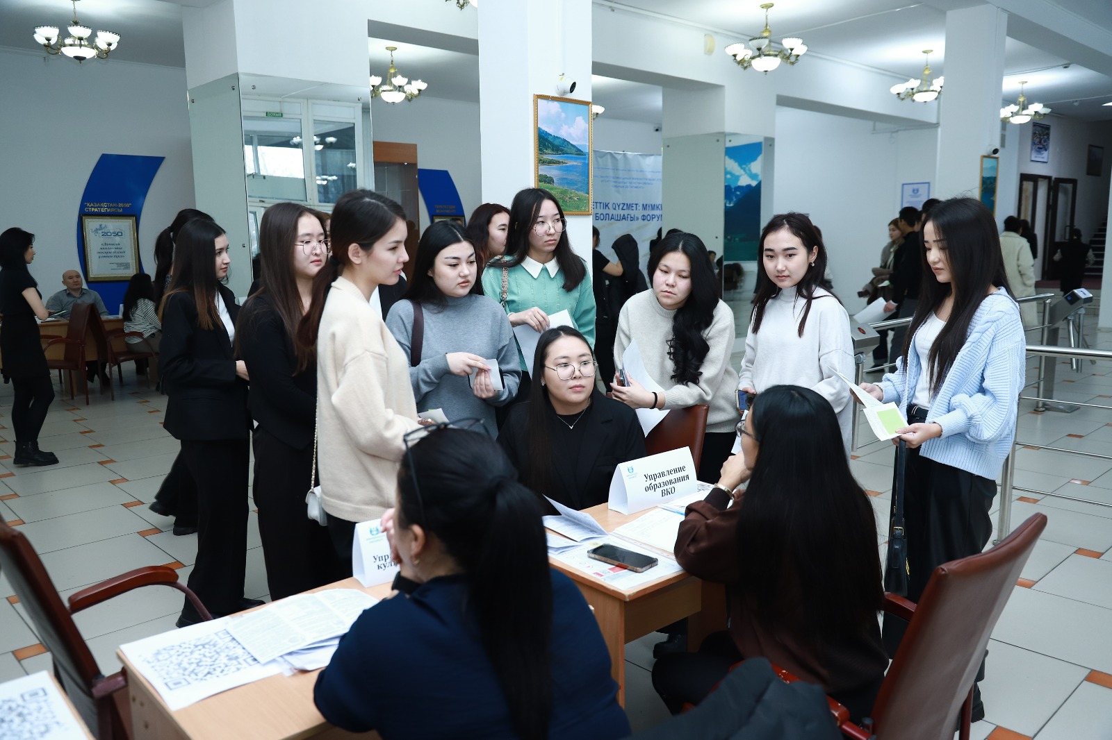 Сондай-ақ жергілікті атқарушы орган өкілдері бос лауазымдар форумы аясында түлектерге басқармалардағы және мемлекеттік қызмет департаментіндегі бос жұмыс оырндарынан жәрмеңке ұйымдастырды.