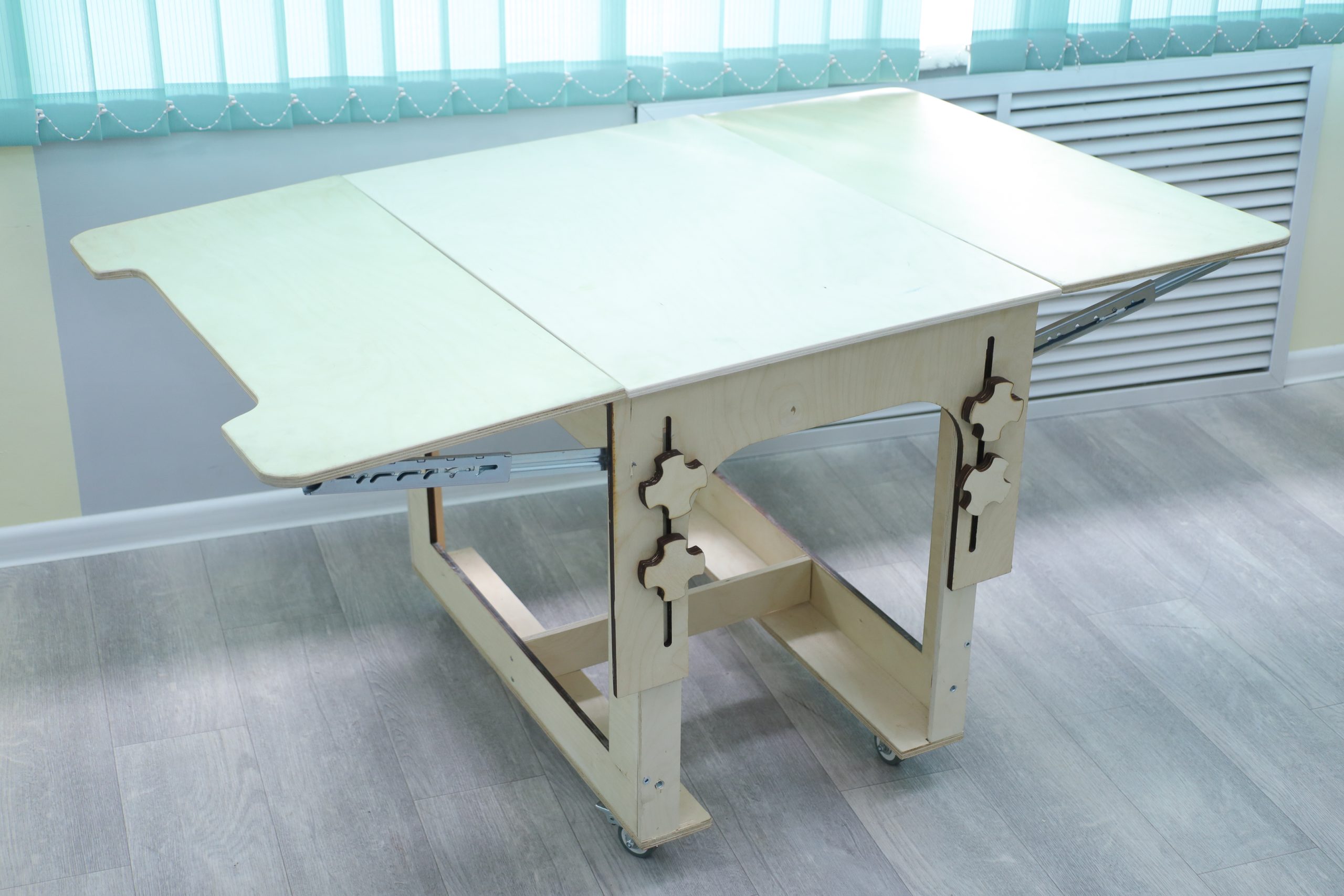 — Сондай-ақ, «Кітапша» парта-үстелін ұсынамыз. Үстелдің бірегейлігі — оның екі жиналмалы үстелі мен ықшамдылығы және алып жүру тұрғысынан ыңғайлылығында жатыр. Ішінде негіздің астында екі кішкентай тумба орналастыруға арналған орын бар. Парта үстелін балалар мекемелерінде, балабақшаларда, мектептерде қолдануға болады. Үстіңгі жағы оп-оңай алынып тасталып, кішкентай үстел етуге келеді. Оны бала өсіп, жасөспірім болғанға дейін пайдалана аласыз, — дейді өнертапқыштар.