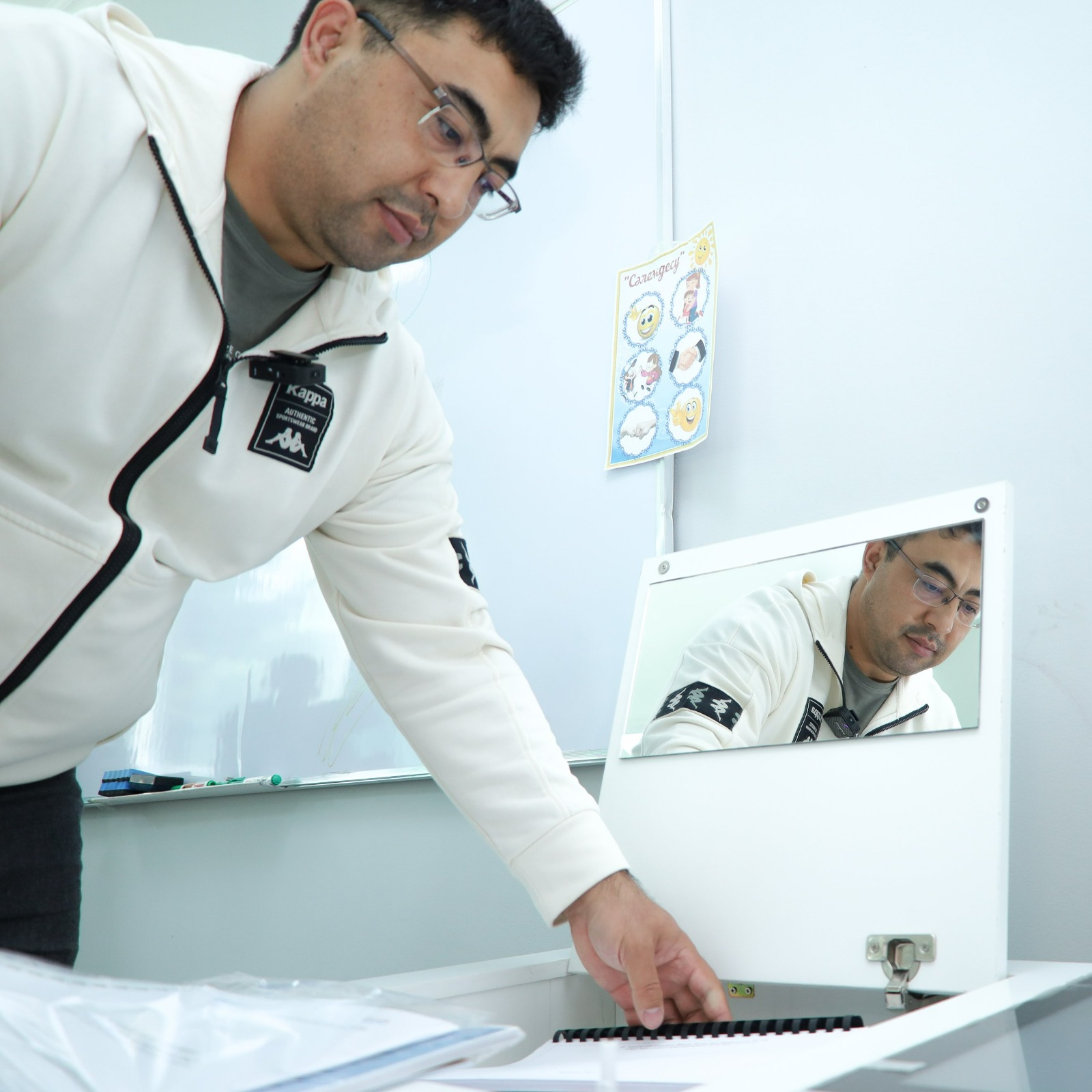 Естеріңізге сала кетейік, инновациялық үстел сөйлеу дамуының тежелуі бар балаларға көмек көрсету құралдарымен жабдықталған. Яғни, сенсорлық моноблок, интерактивті панель, кәсіби логопедтік айна, логопедтік карточкалар мен қазақ тіліндегі әдістемелік материал бар.