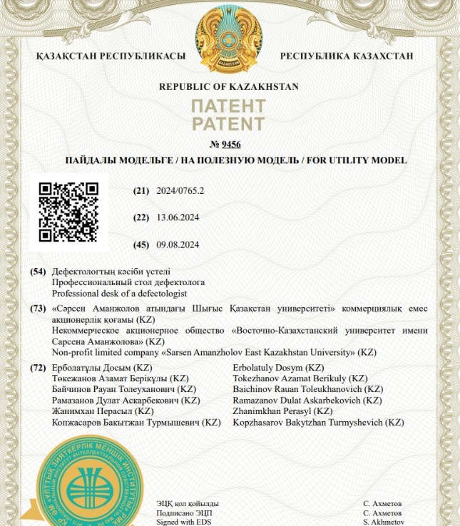 ШҚУ ҒАЛЫМДАРЫ ЖАҢА ПАТЕНТКЕ ИЕ БОЛДЫ