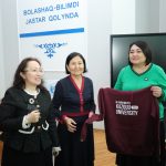 Қабылдау соңында университет қонақтары елордалық университеттің түлектері ректор Мұхтар Төлегенге және Бизнес және құқық жоғары мектебінің деканы Әсел Апышеваға КАЗГЮУ логотипі бар свитшоттар мен естелік сыйлықтарды табыстады.