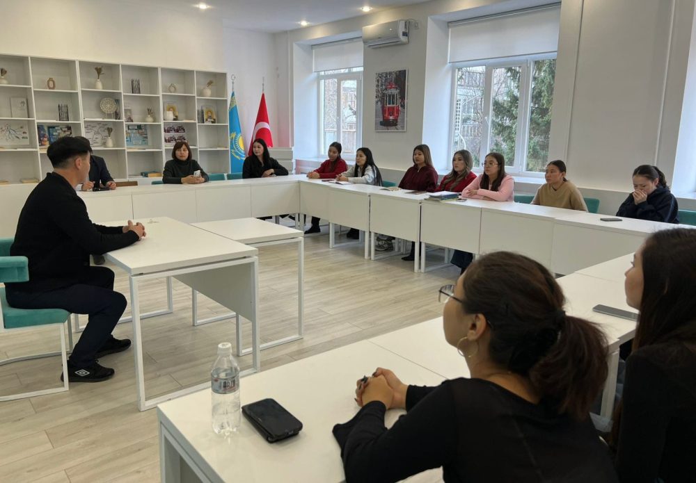 Астана қаласынан келген қонақ студенттермен ұлттық рухты жаңғырту, салт-дәстүрді сақтау және тарихи-мәдени маршруттарды насихаттау бағытындағы тәжірибесімен бөлісті. Ол салт атпен елдің киелі аймақтарына жасаған сапарлары туралы тың деректер келтіріп, Жошы хан мазарына, Бозоқ қалашығына, Жидебайға және басқа да тарихи бағыттарға барған кезде жинаған әсерлерін баяндады.