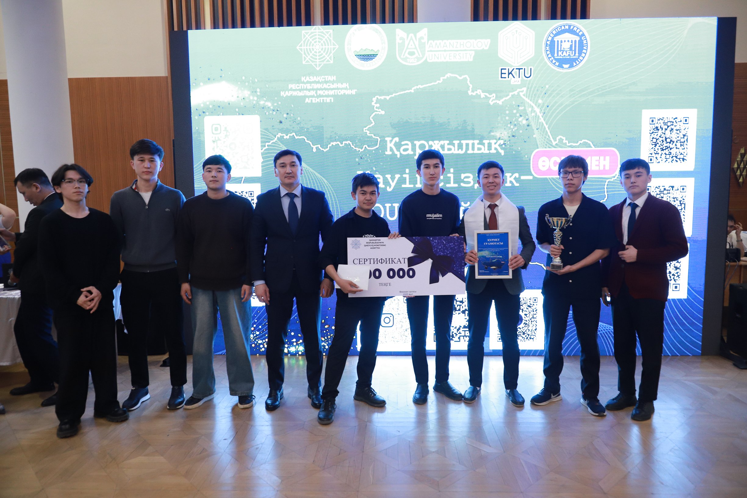 Зияткерлік ойынның қорытындысы бойынша С.Аманжолов атындағы ШҚУ-дың «Parasyz profi» командасы 1 орынға ие болып, 200 000 теңге ақшалай сыйлықпен марапатталды. Екінші, үшінші орынды Аманжолов жастарынан құралған «Қаржы сарапшылары» және «Mugalim boys» командалары иеленді. Оларға 150 000, 100 000 теңге көлемінде ақшалай сыйлық берілді.