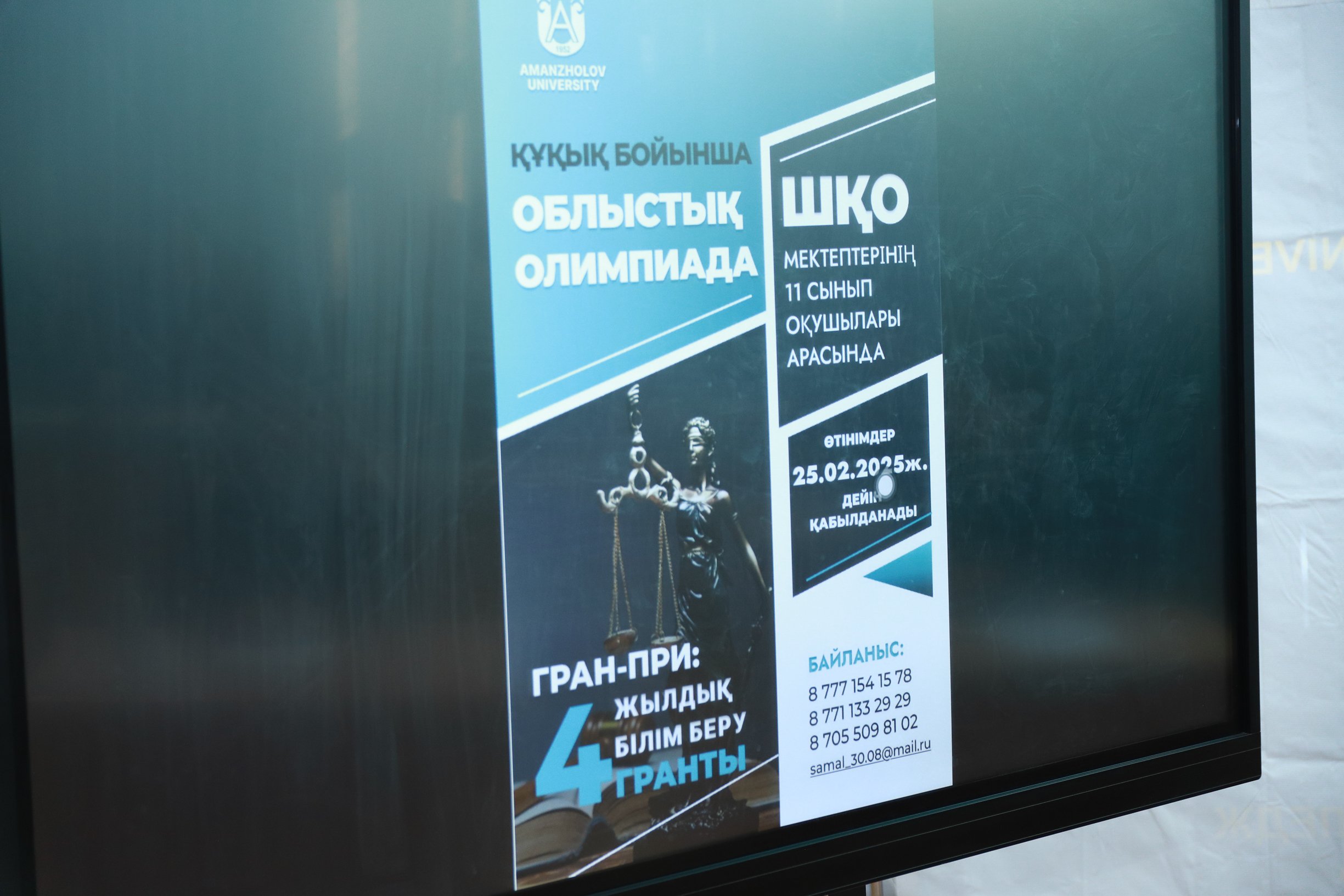 According to the results of the Olympiad, Kamshat Alipbaeva, a pupil of “School-lyceum № 43 named after K. Nurgaliyev” of Ust-Kamenogorsk city, won the Grand Prix and a four-year educational grant on the subject “Jurisprudence”.