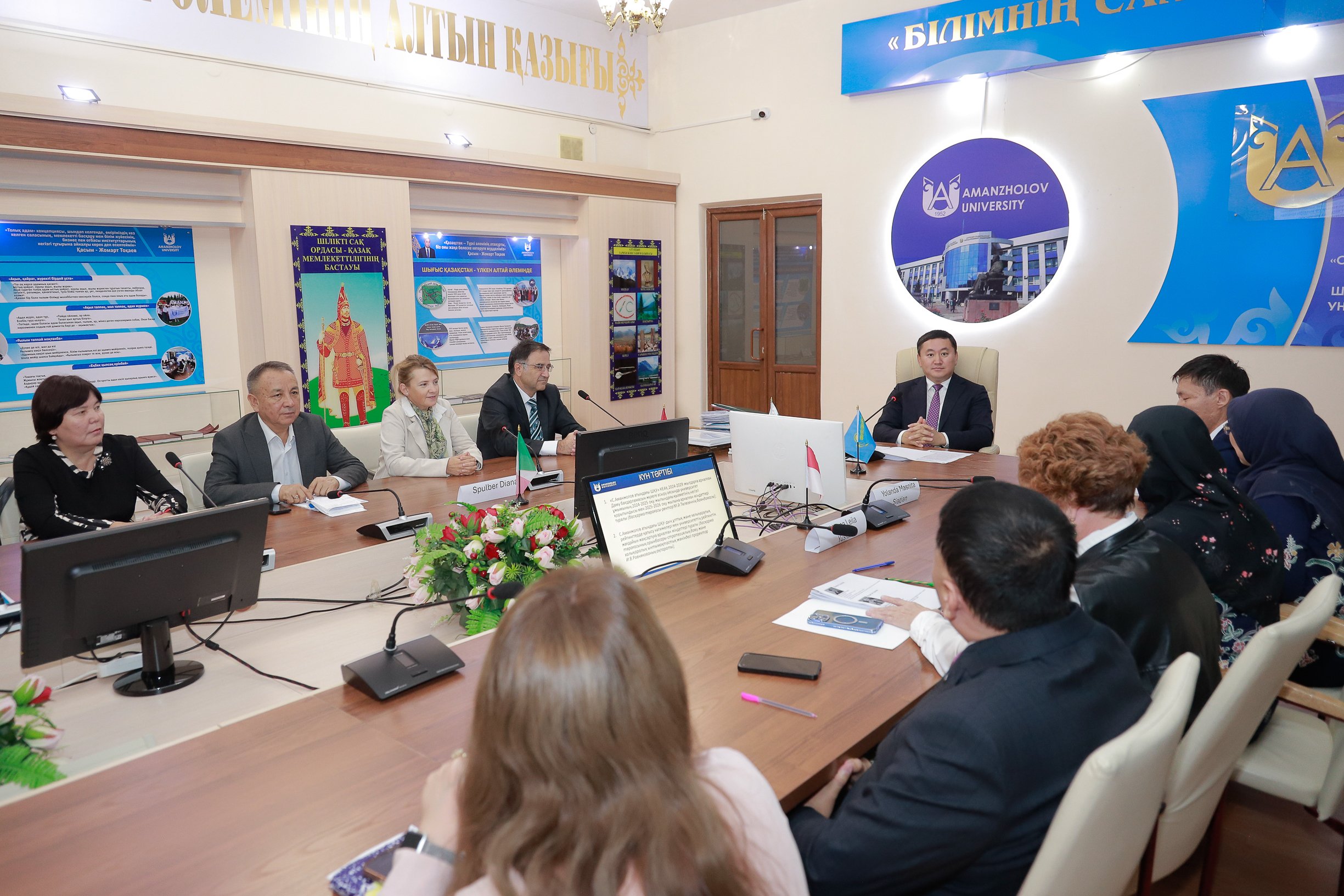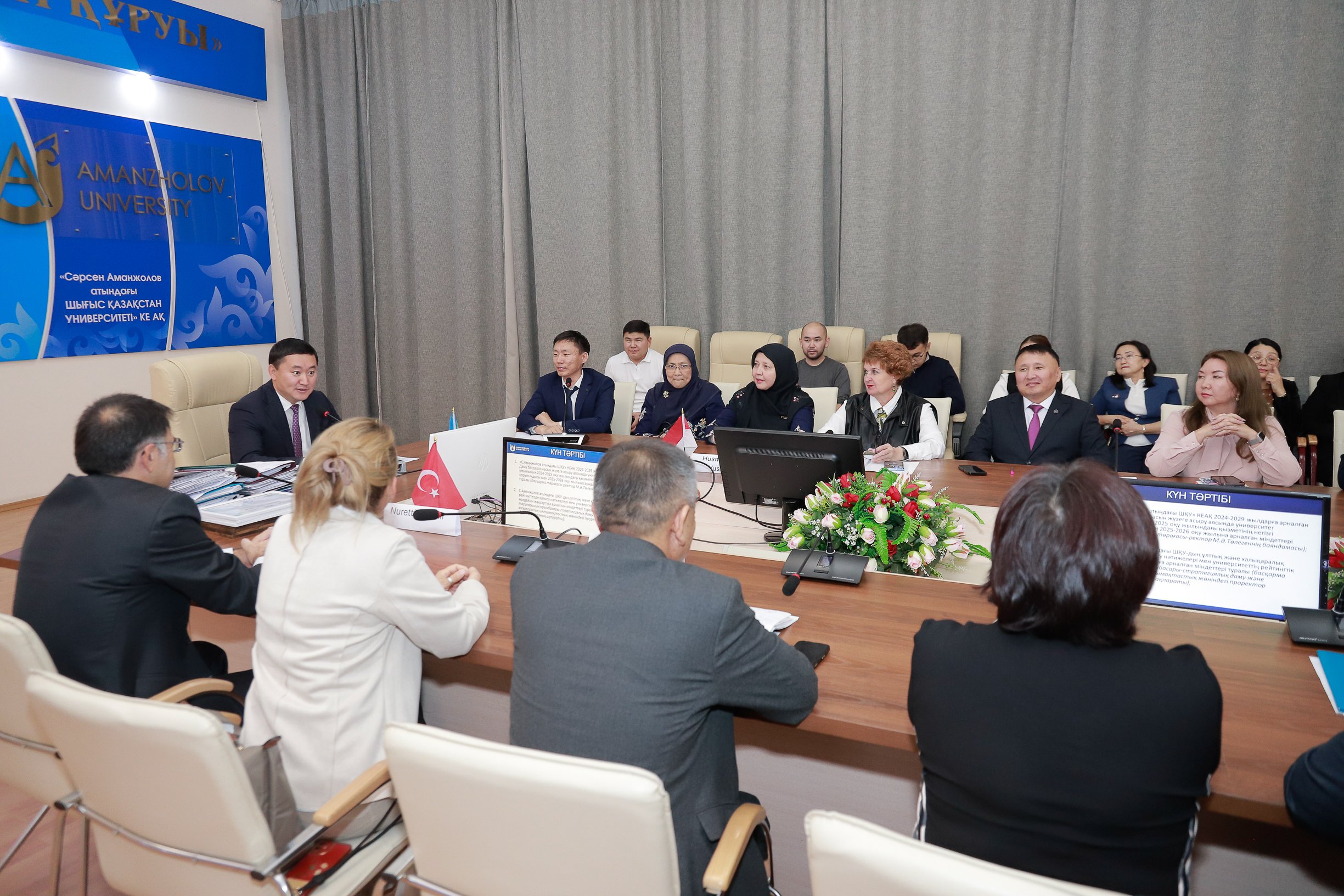 At Sarsen Amanzholov East Kazakhstan University, a meeting of the Academic Council was held under the chairmanship of the rector. The event brought together faculty members, students, and honored guests from international partner universities.