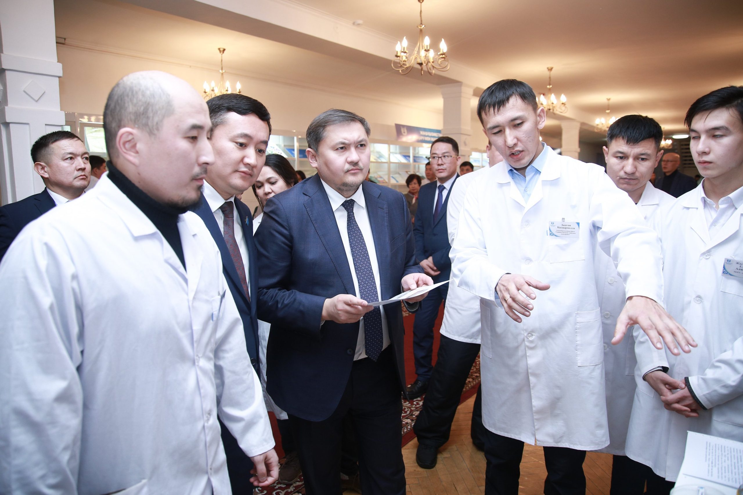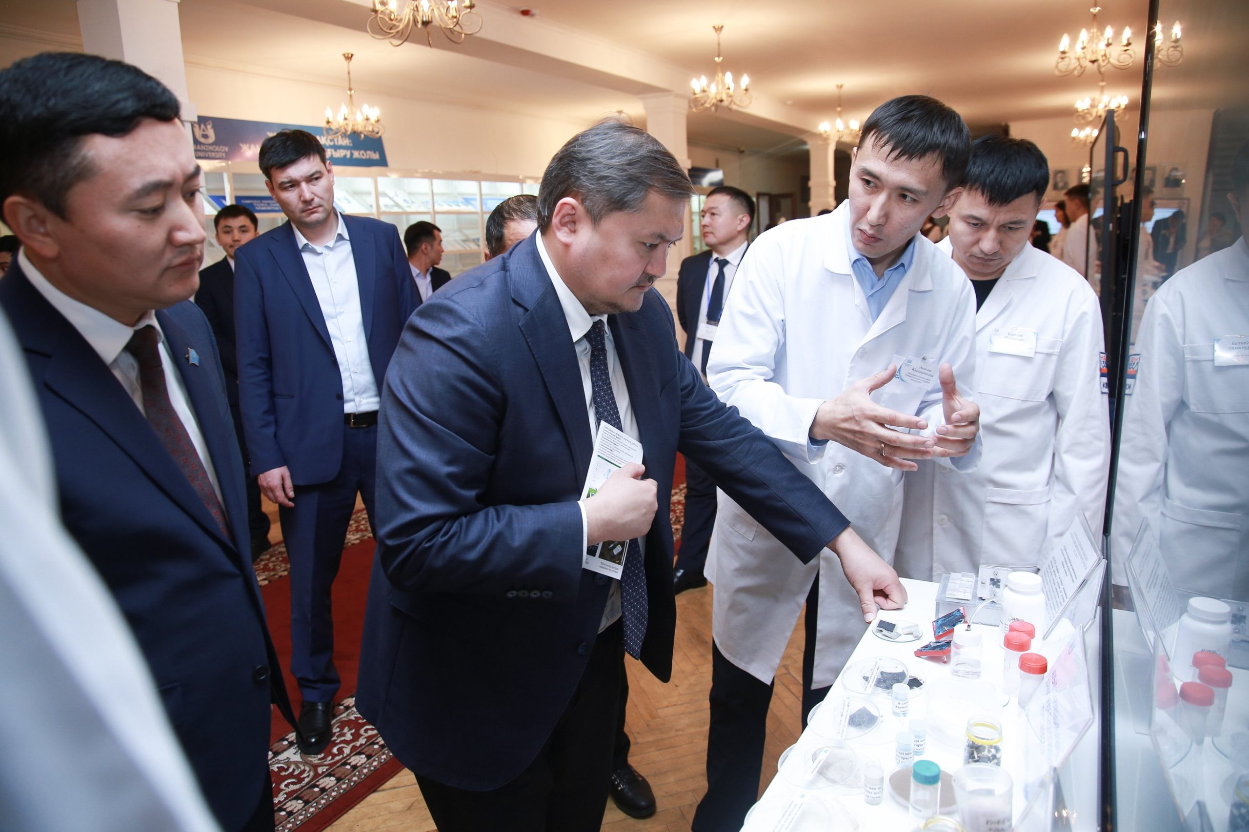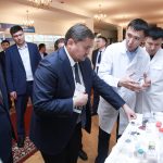 In addition, the head of the department noted the worthy material and technical base of scientific centers and talked to the scientists of the university. Thus, the innovator Telek Kuanyshbekov presented the project “Production of composite filtering materials for the purification of water bodies”, aimed at solving the urgent world problem – poor quality of fresh water.