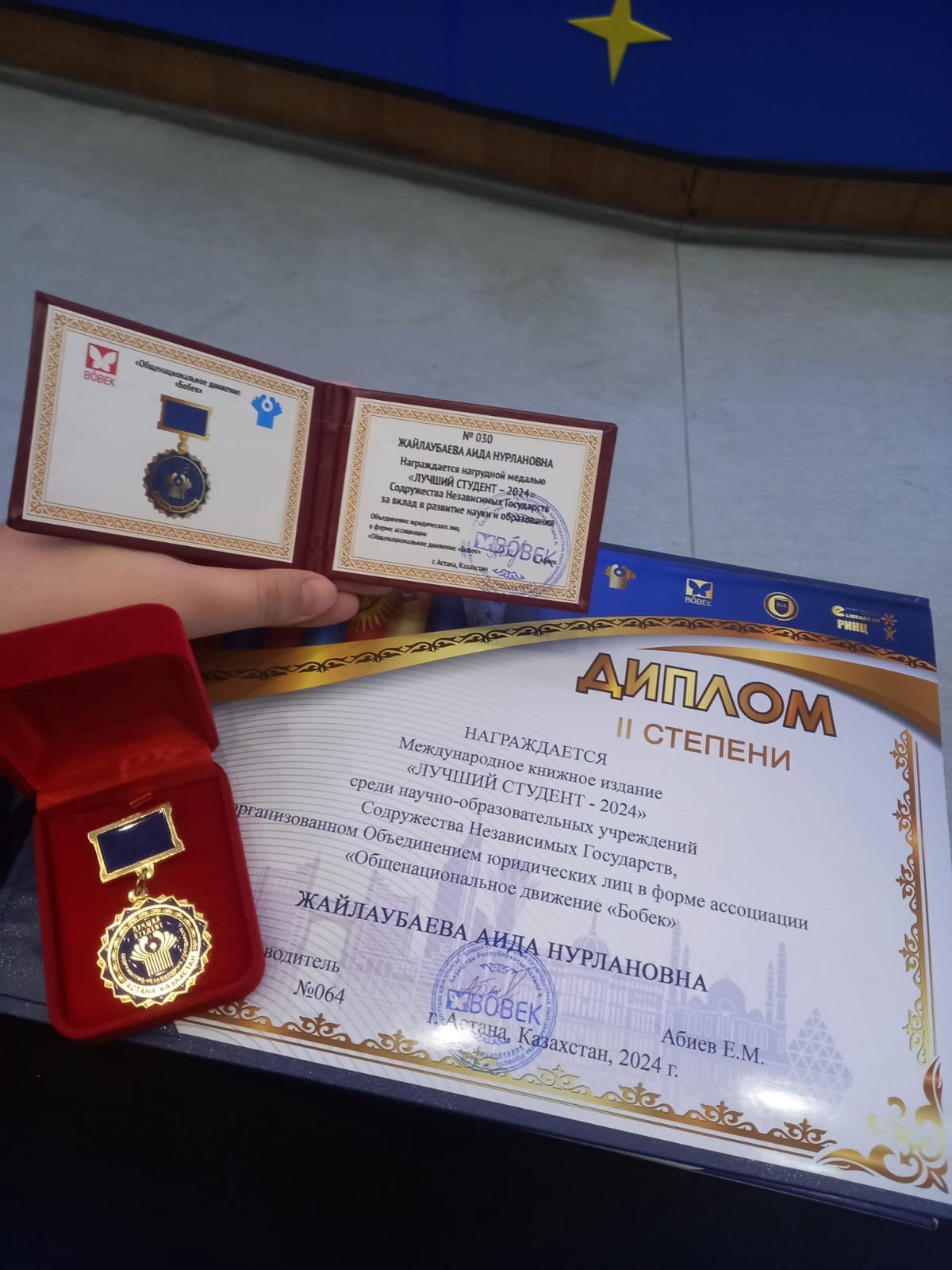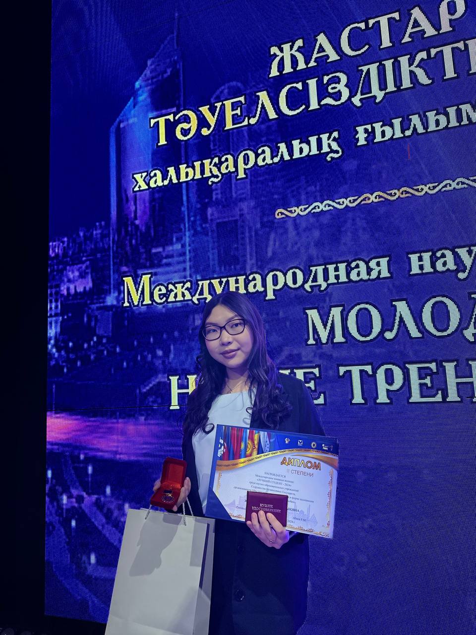 — Білгенде қатты қуандым. Марапаттау шарасы Астанада өтті. Байқаудың барлық жеңімпаздарына «ТМД-ның үздік студенті 2024» төсбелгісі берілді. Әрине сертификаттар пен естелік журналдар табыстады. Осындай марапатқа ие болғаныма қуаныштымын. Жетістіктерім табысты мансап құруға көмектесетініне, жаңа жеңістерге ынталандыратынына сенімдімін, — деді Аида.