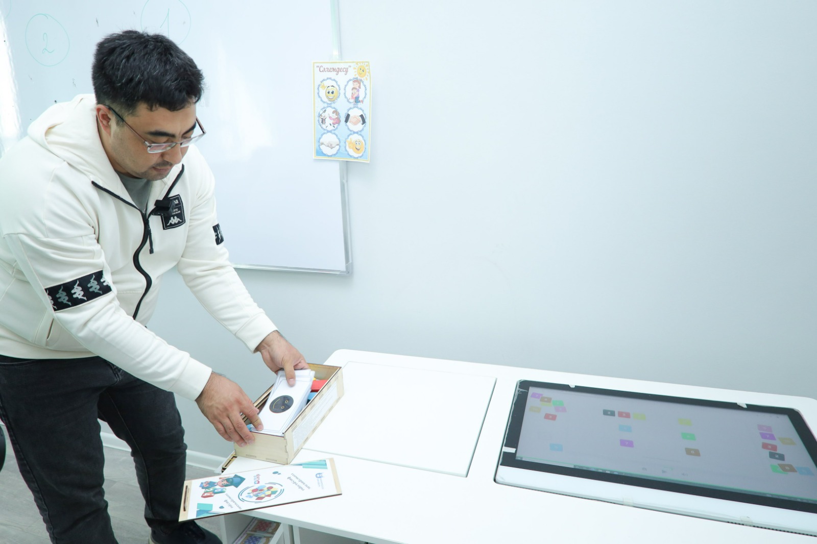 Логопедтер мен дефектологтарға арналған Қазақстанда баламасы жоқ интерактивті үстелге сенсорлық моноблок, интерактивті панель, кәсіби логопедиялық айна, логопедиялық карточкалар мен әдістемелік материал кіреді. Дыбыстарды және қарапайым математикалық көріністерді автоматтандыруға арналған 100-ден астам тапсырма да бар. Сондай-ақ, оларды сөйлеу қабілеті нашар, психикалық дамуы тежелген немесе ақыл-есінде кінәраты бар балаларды түзету үшін қолдануға болады.