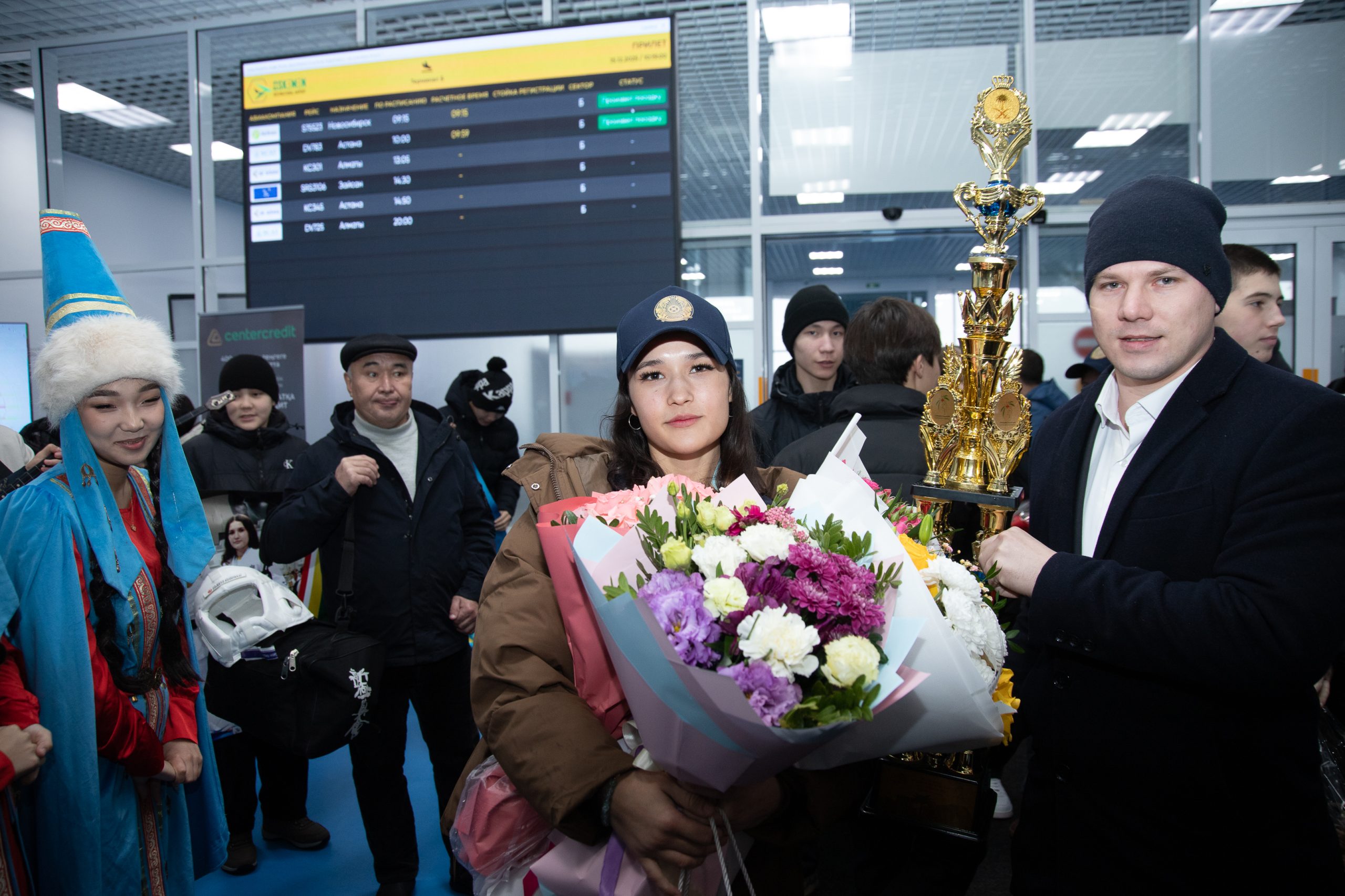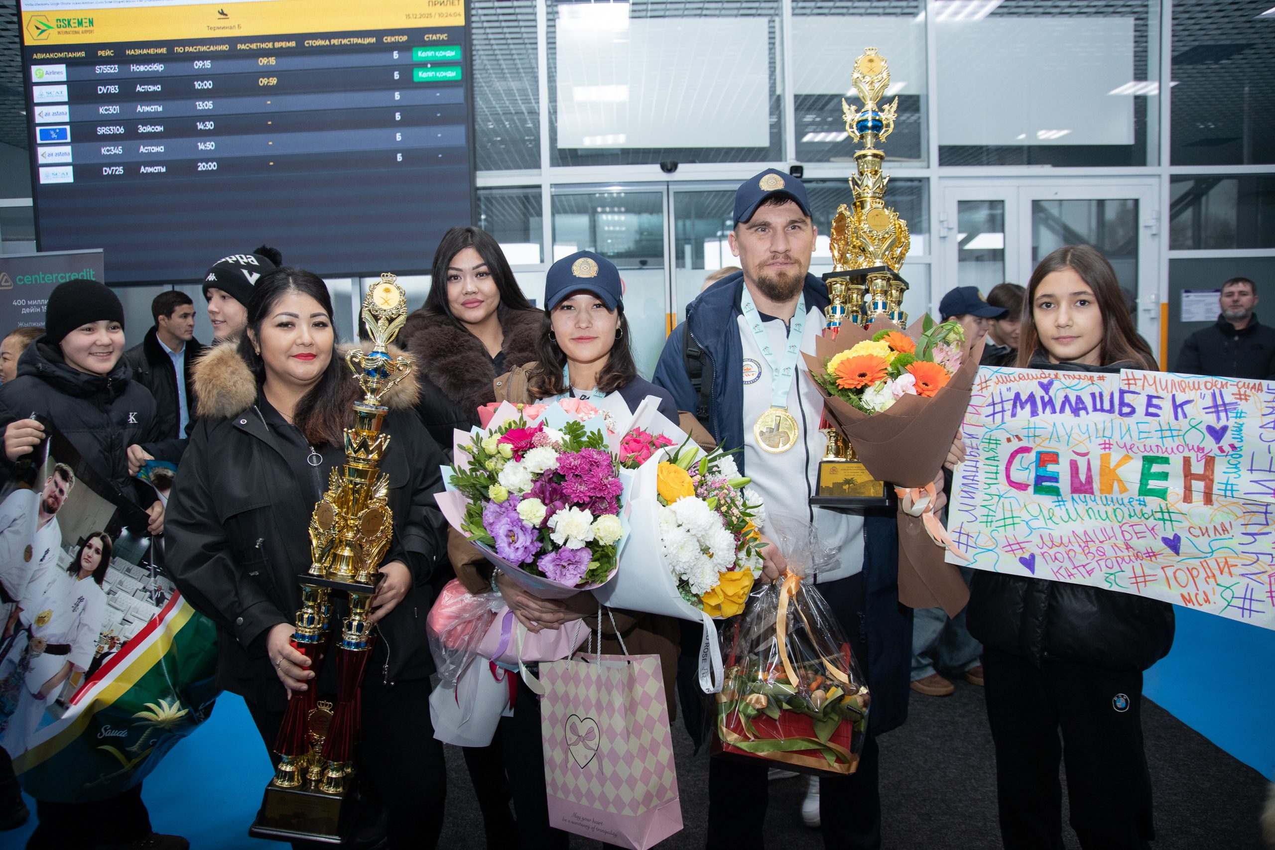 Today, a warm and ceremonial welcome was held at Ust-Kamenogorsk Airport for Milana Shchetinina, a student of Sarsen Amanzholov East Kazakhstan University and a world karate champion, who returned from the prestigious international tournament The 5th World Kyokushin Championship, held in Riyadh, Saudi Arabia.