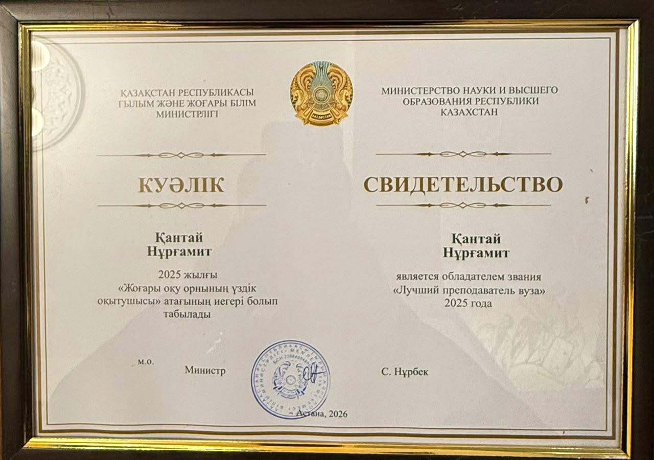 In this competition, Amangolov University teachers Muratkan Madiyarov and Nurgamit Kantay became winners and were awarded the title of ‘Best Teacher of the Year – 2025’ thanks to their high professionalism and significant achievements in scientific and pedagogical activities.
