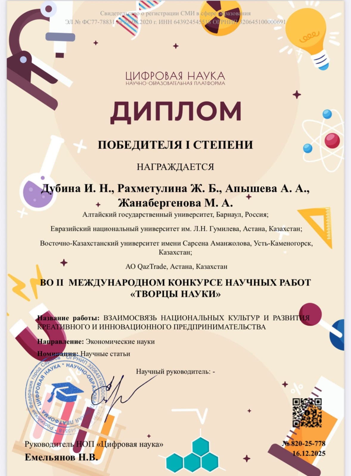 - Amanzholov university bulletin