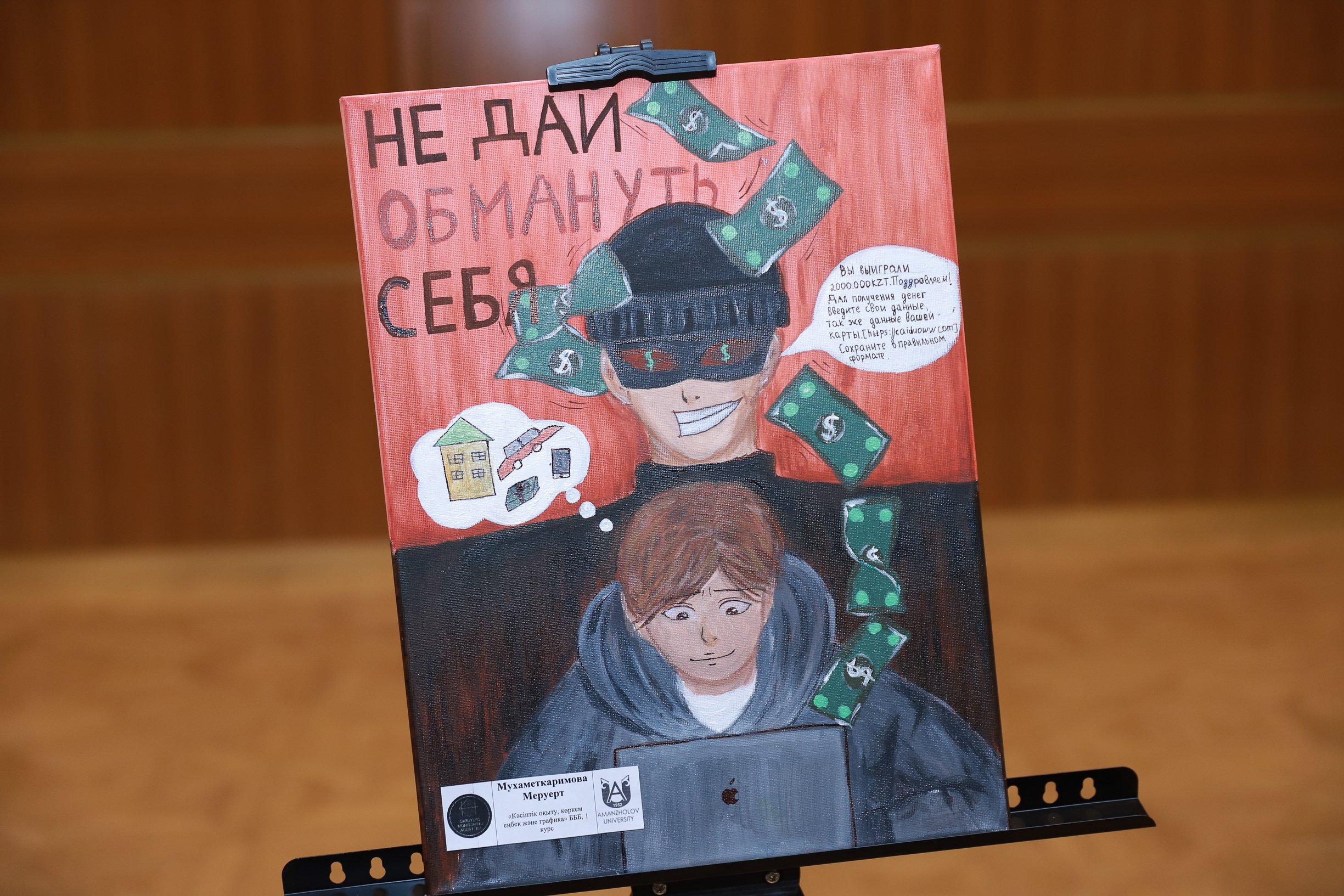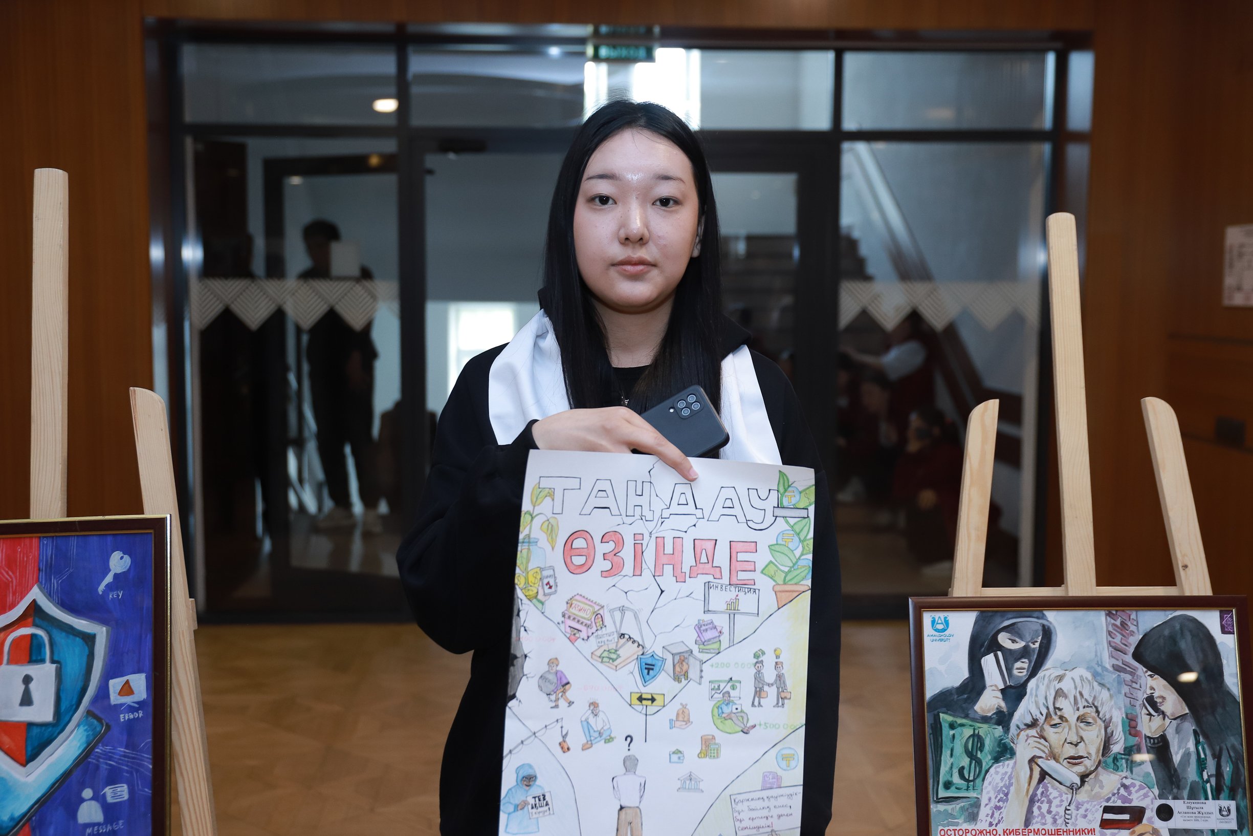 – The guys depicted legal and psychological ways of how to protect oneself from scammers, as well as the importance of financial literacy. When I saw the paintings, I was pleased with the talent and ingenuity of our students,” said Gulmira Bayirkenova, associate professor of the Department of Jurisprudence.