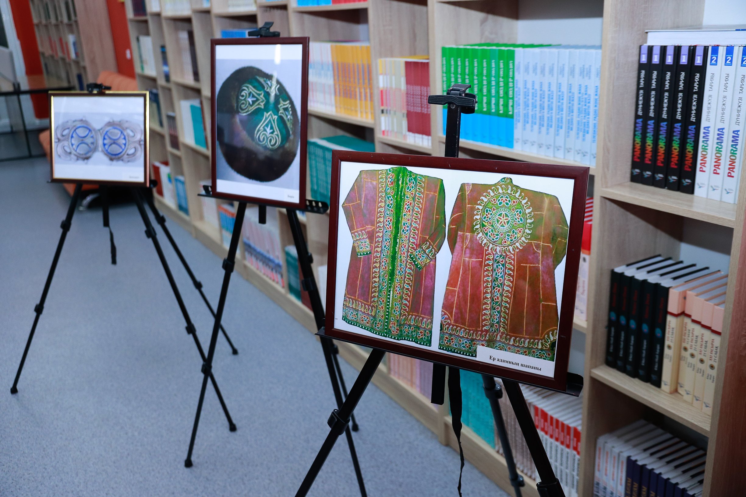 В рамках мероприятия была организована небольшая выставка образцов национальной одежды, где были представлены традиционные саукеле, камзол, шапан, мужские и женские головные уборы, а также их современные интерпретации. Особый интерес аудитории вызвали работы молодых мастеров, возрождающих народное декоративно-прикладное искусство.