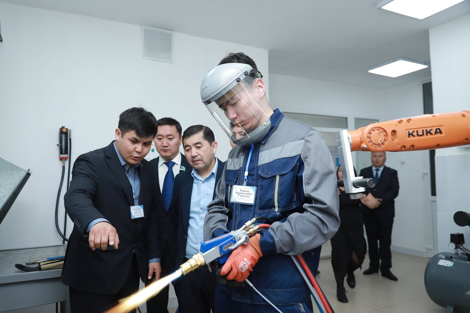 The scientists presented their alma mater and resource-saving technologies for strengthening soil tillage machines to the guest. The project is intended for research and development of electrofriction technology for hardening the cutting blade of soil tillage tools. Electrofriction treatment forms a quality wear-resistant layer. According to Yerbol Nurgaliyev, this project is interesting and necessary in the field of energy, as well as agricultural, construction and mining engineering.