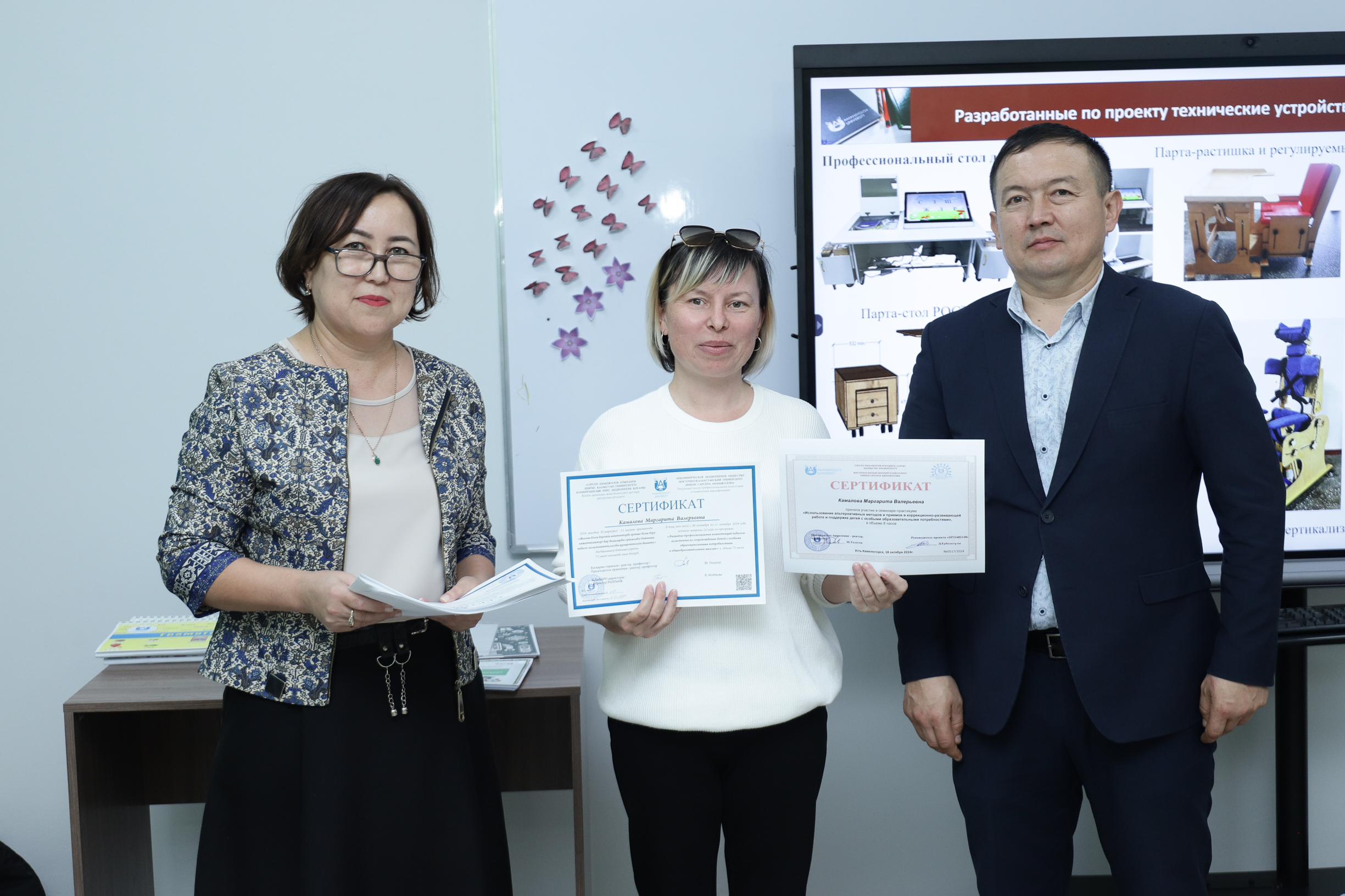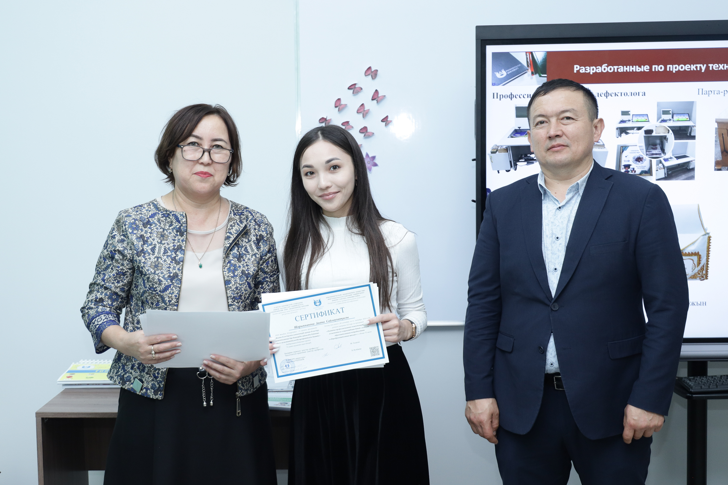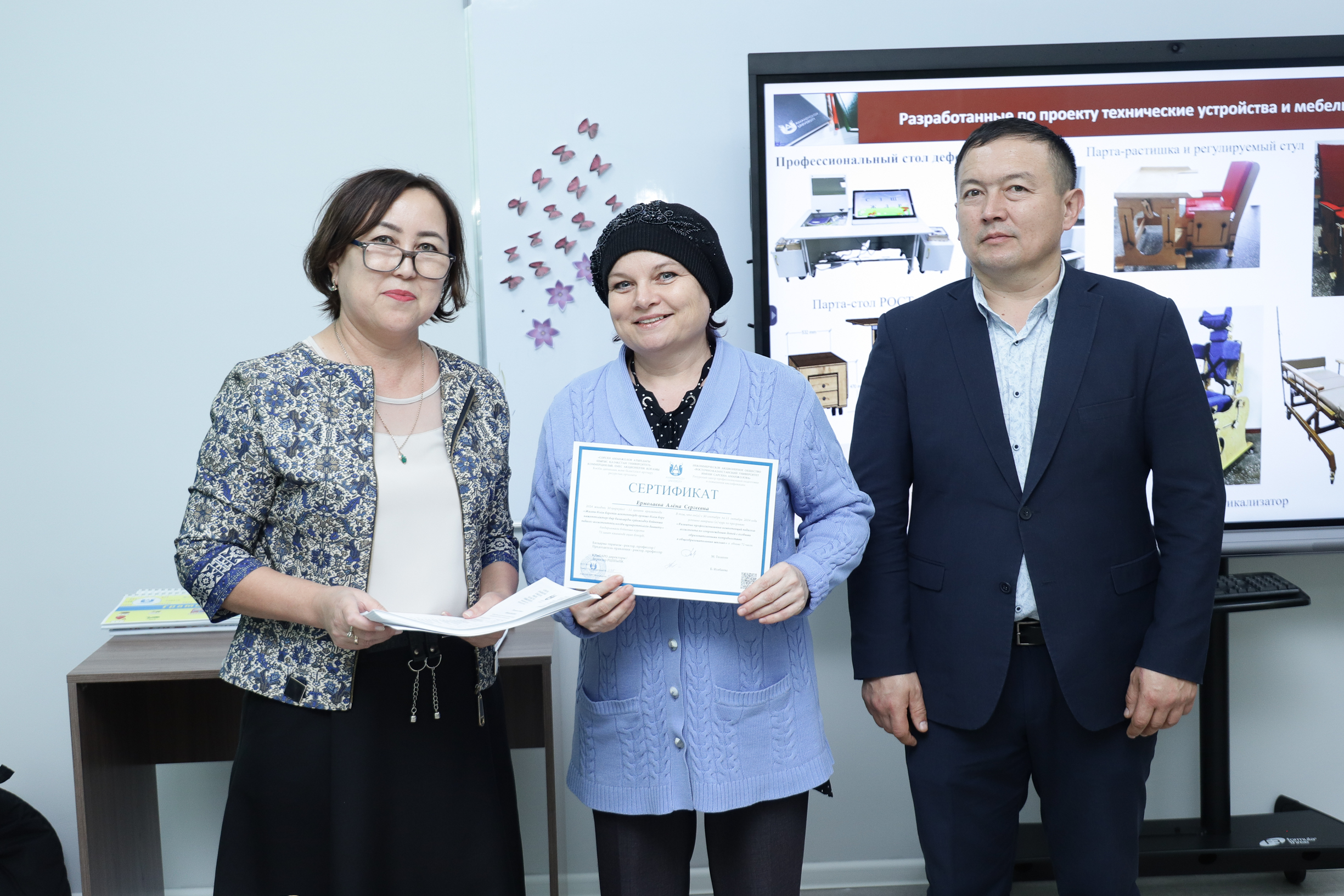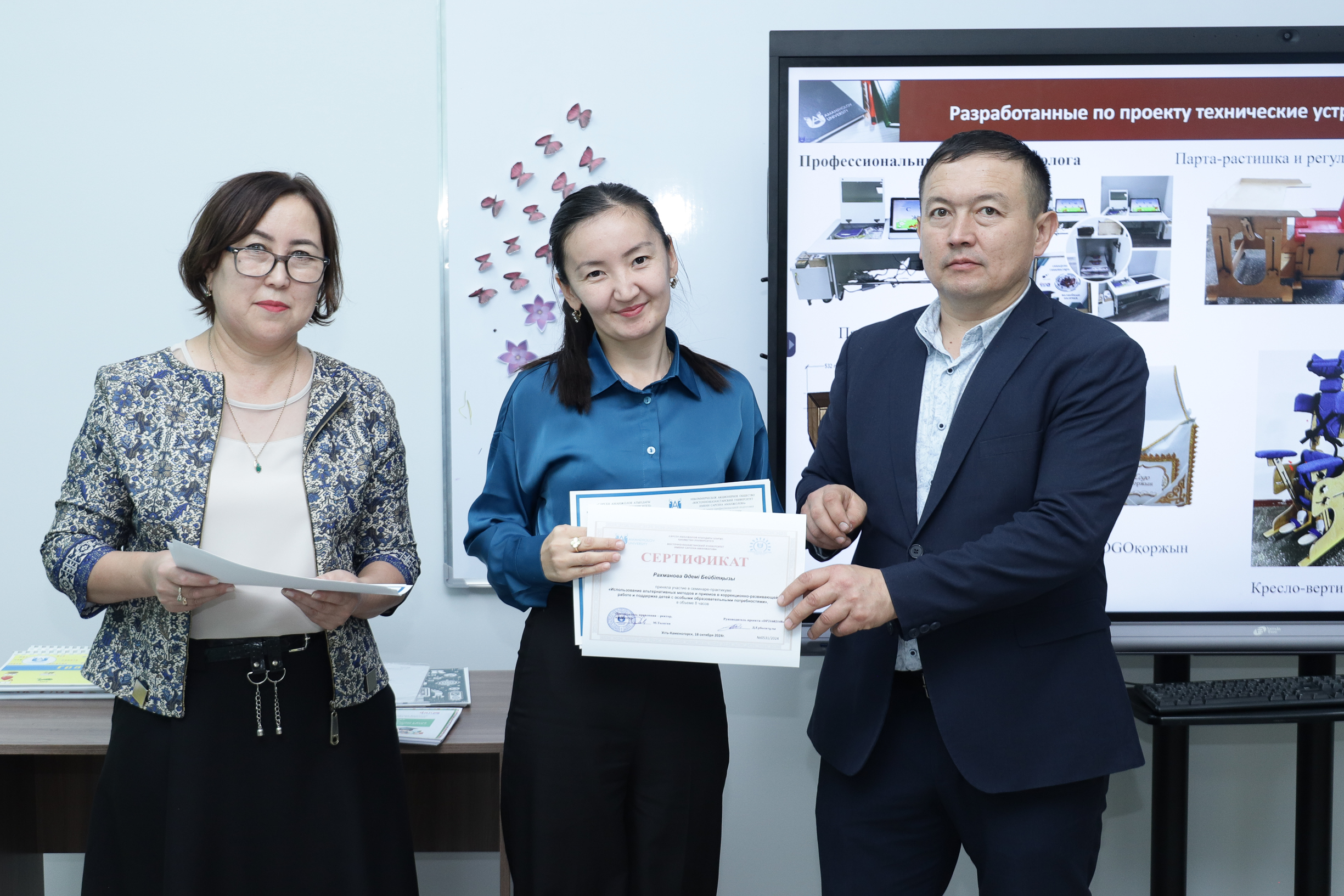 S. Amanzholov East Kazakhstan University awarded certificates of professional development to the students of the course “Development of professional competencies of a teacher-assistant to support children with special educational needs in general education schools”. This course was agreed with the Ministry of Education of the Republic of Kazakhstan.