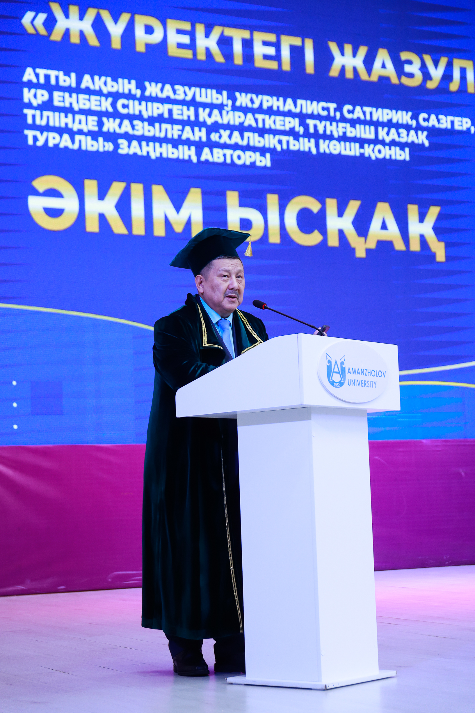A significant highlight of the event was the ceremonial awarding of the title of Honorary Professor to Akim Abdikhaymuly Yssak. The corresponding decision was made by the Academic Council of Sarsen Amanzholov East Kazakhstan University on November 27, 2025. This high title recognized his contributions to science, culture, and society, as well as his many years of fruitful work.